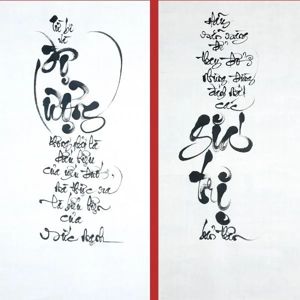 Thư pháp lá bồ đề chữ TỪ BI TRÍ TUỆ