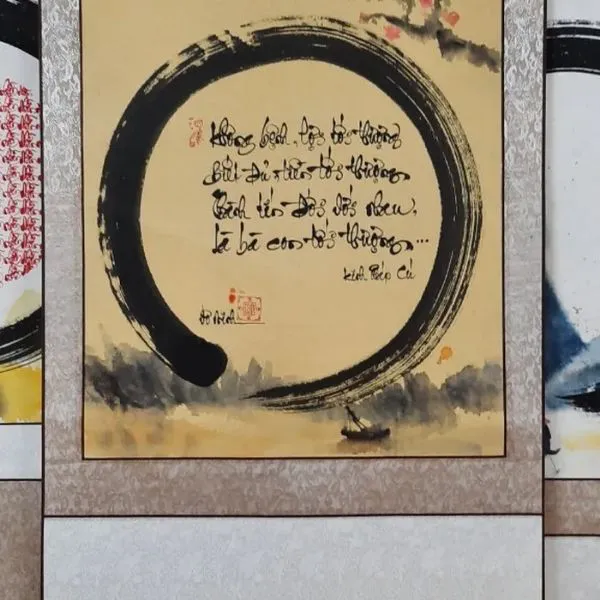 Liễn thư pháp vòng tròn ZEN ghi 1 bài kệ Kinh Pháp Cú