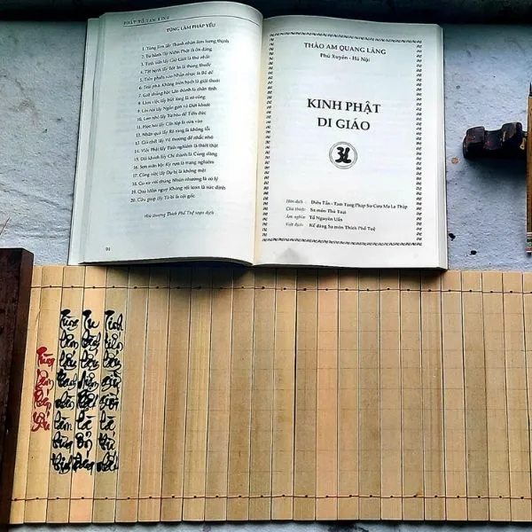 Thư pháp lá bồ đề dát vàng TRI ÂN CÔNG ĐỨC