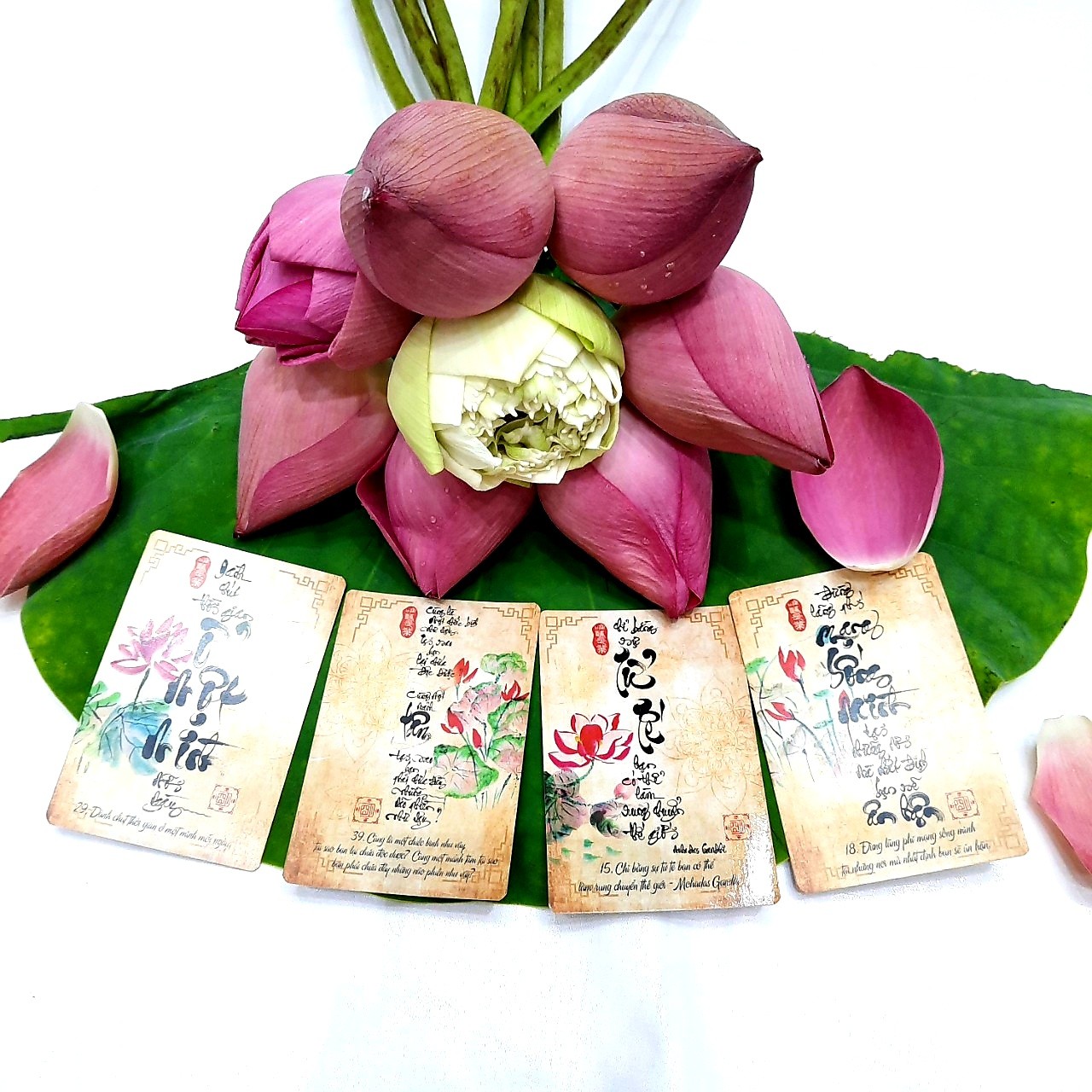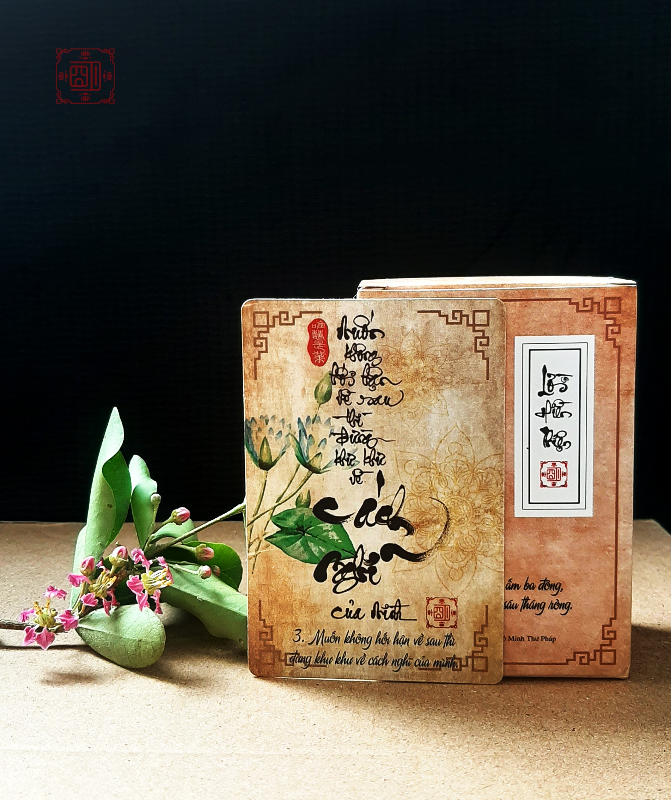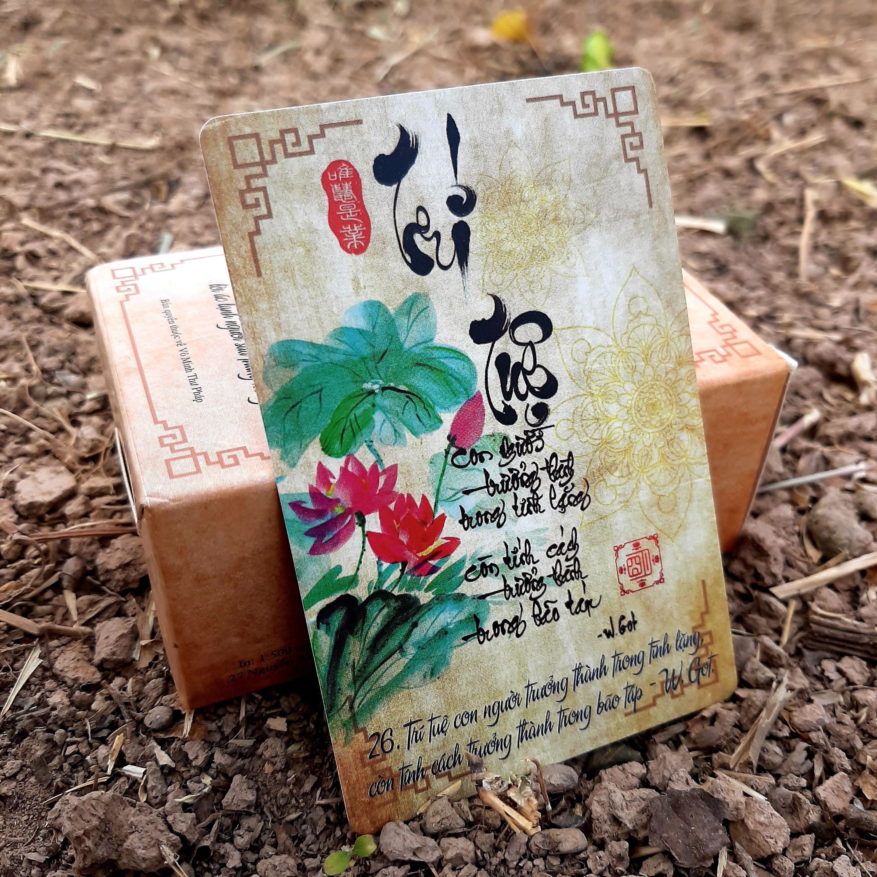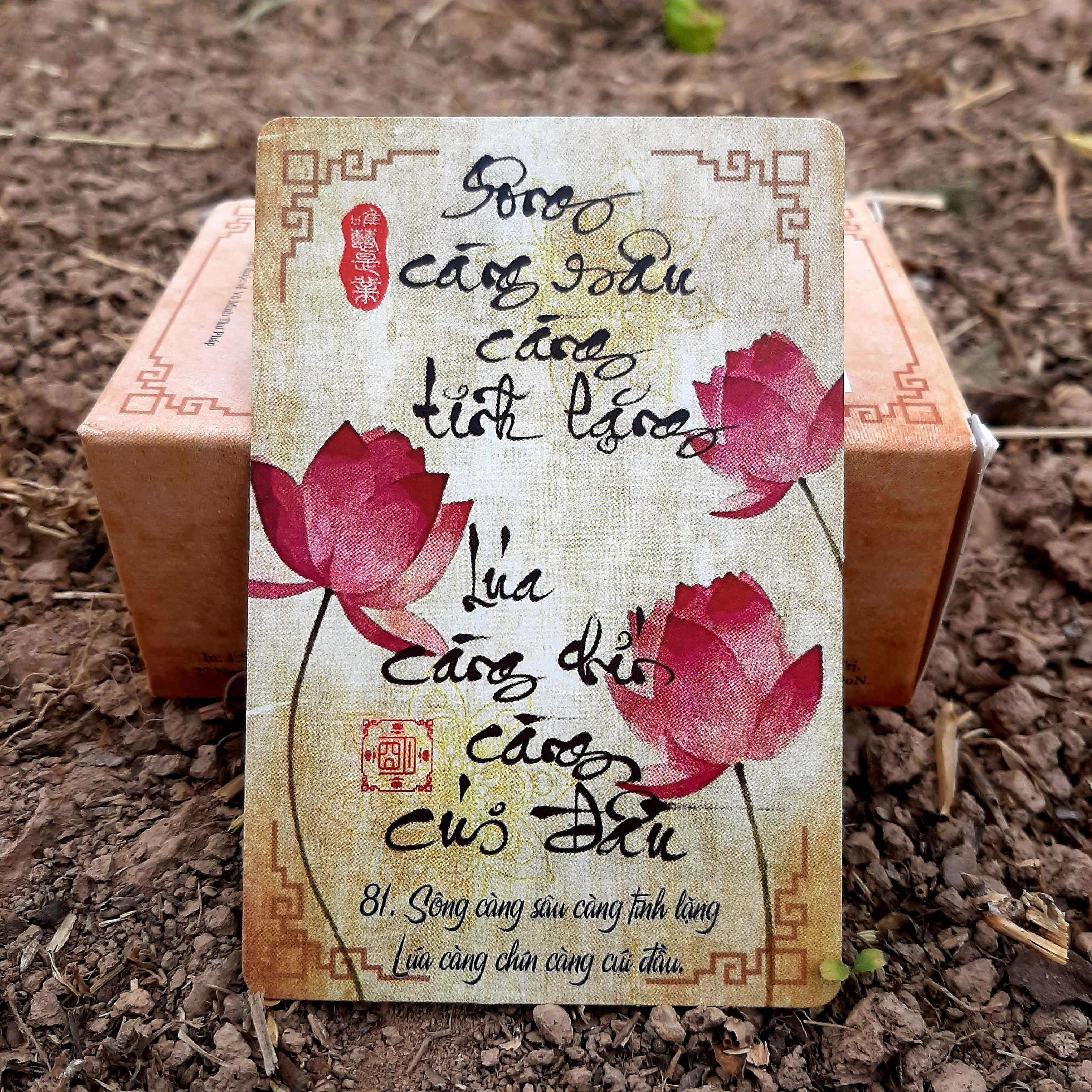 Số lượng: Mỗi hộp gồm 102 lá, ghi 102 lời hiền thiện của các hiền nhân.