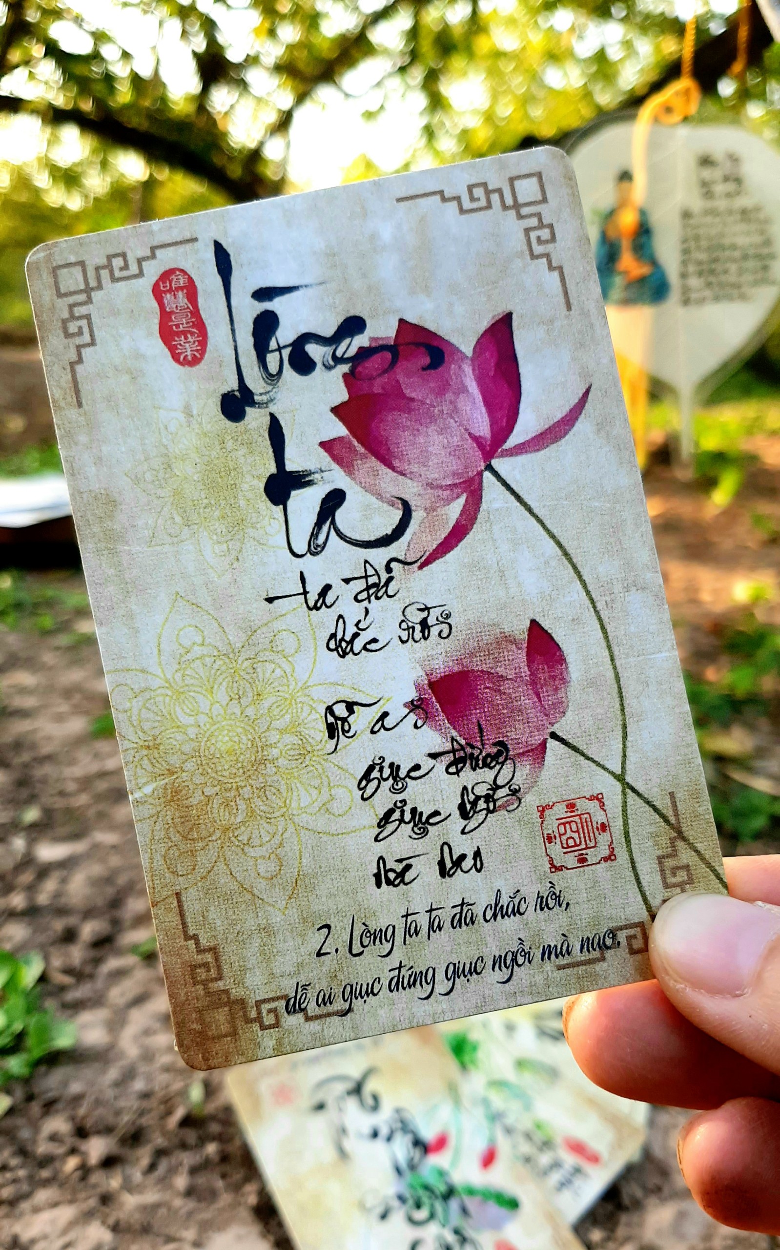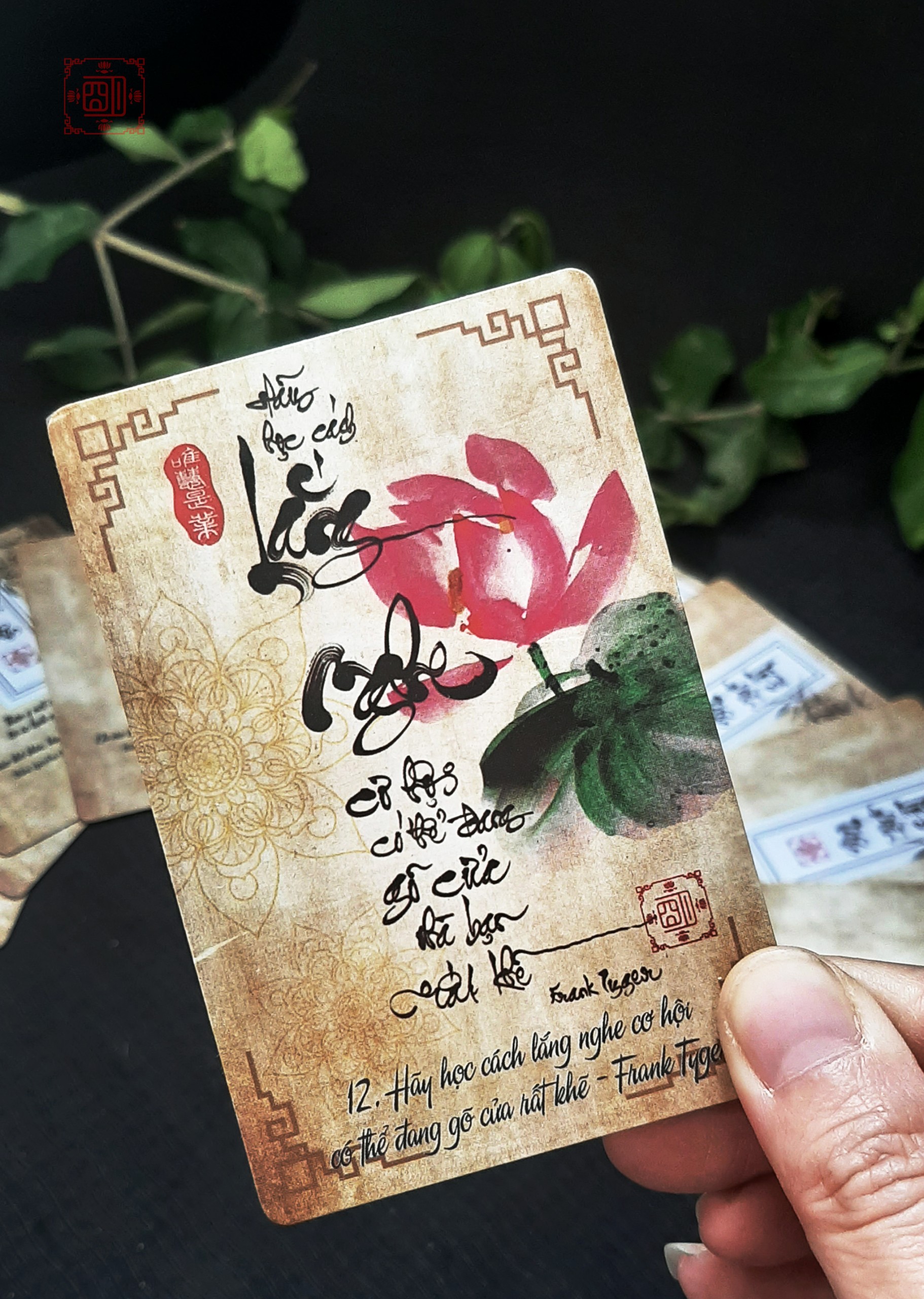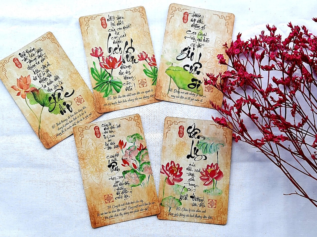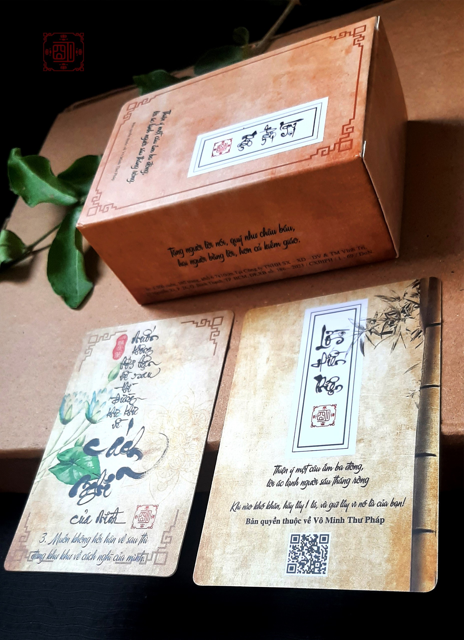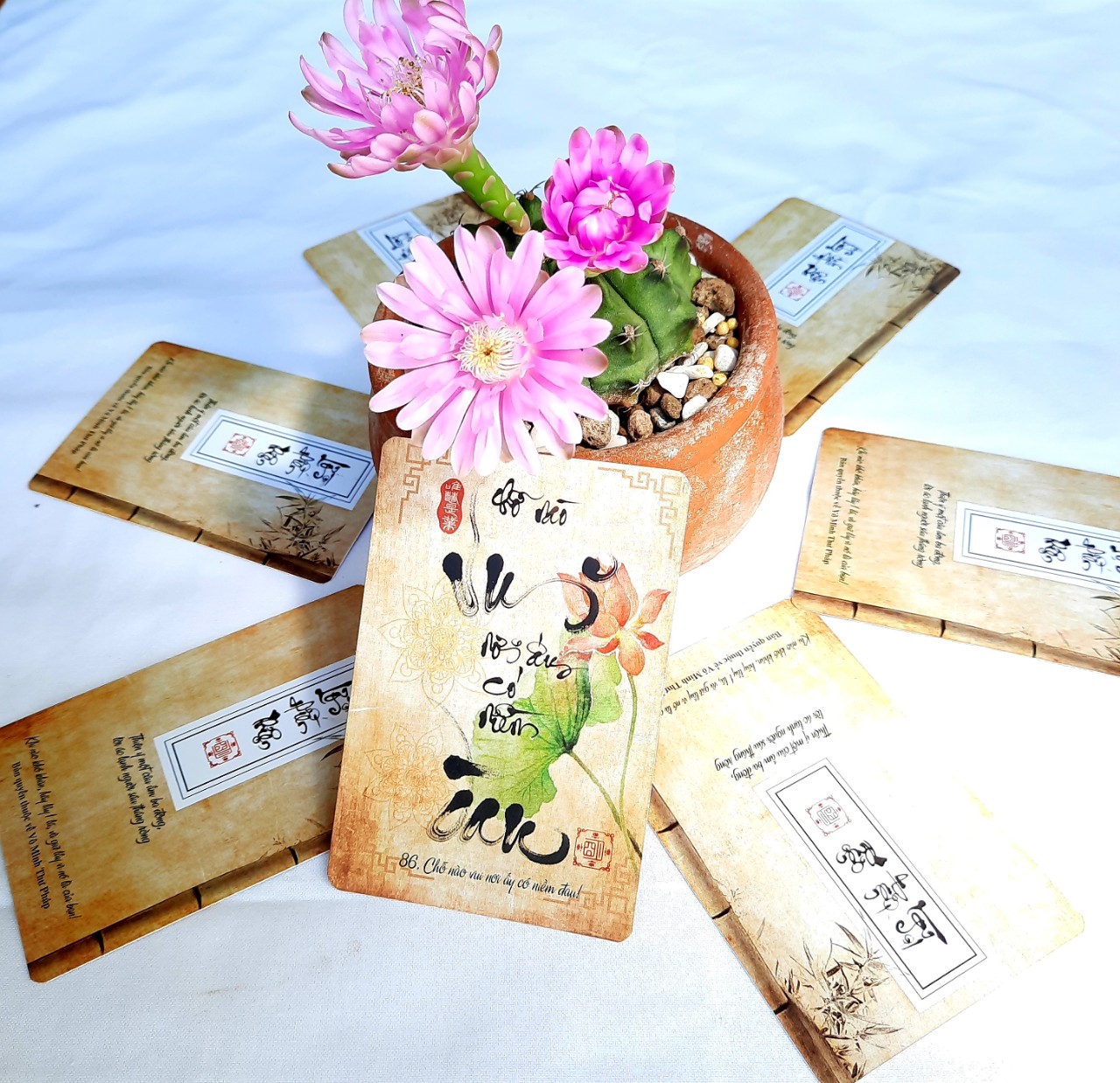 Số lượng: Mỗi hộp gồm 102 lá, ghi 102 lời hiền thiện của các hiền nhân.