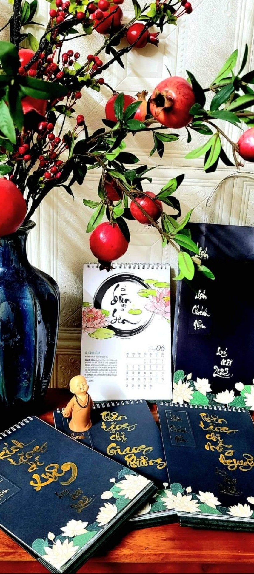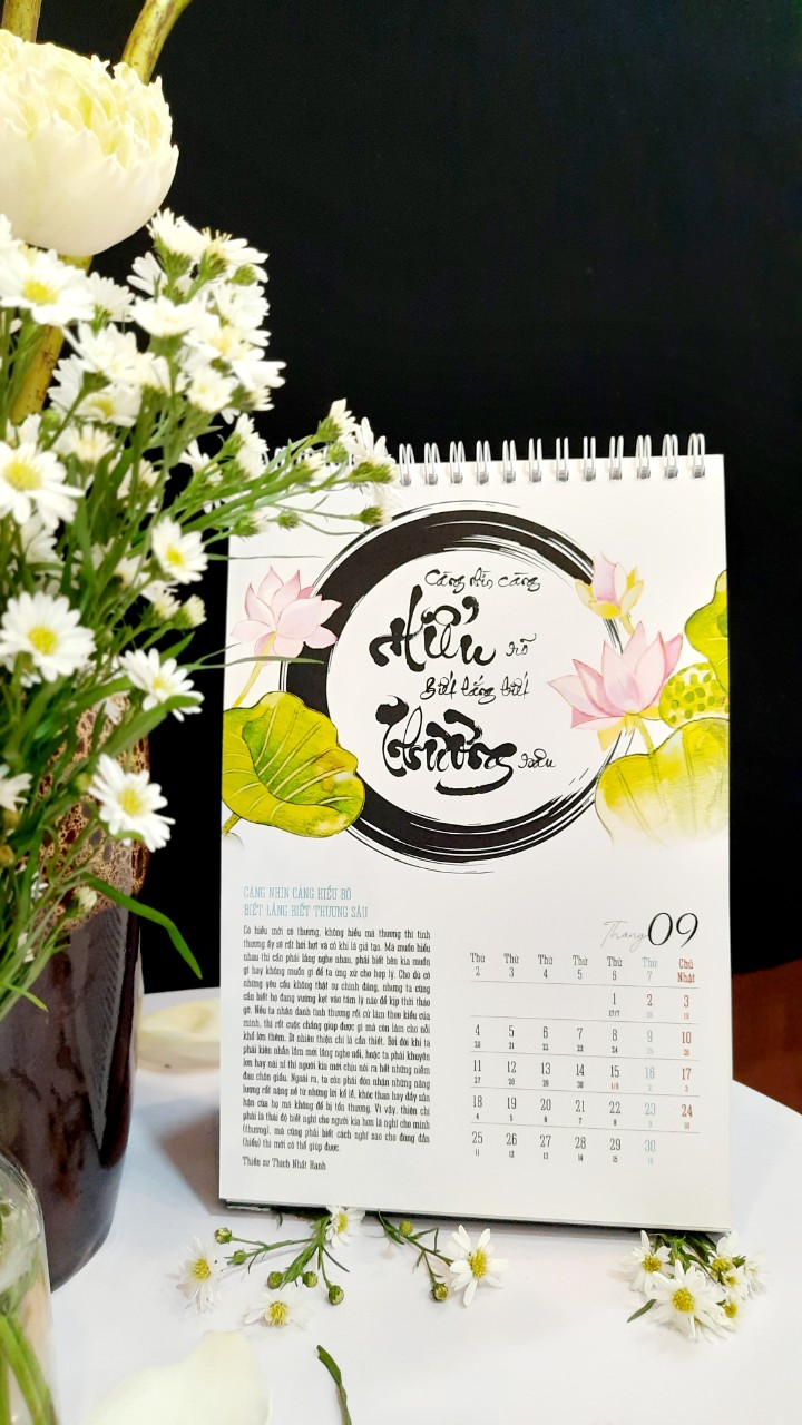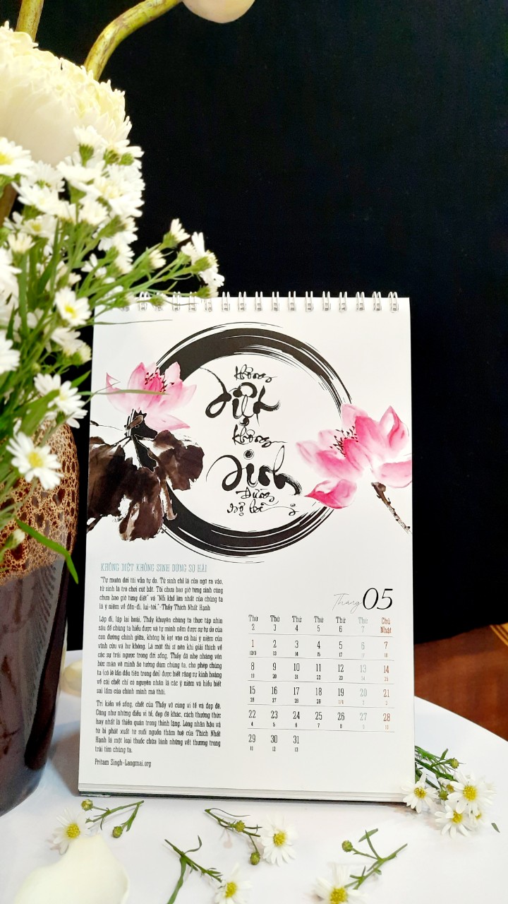 Bộ LỊCH CHÁNH NIỆM 2023 gồm 13 tờ với 12 tháng là 12 câu nói chánh niệm và ý nghĩa từng câu nói để chúng ta có thể sống chánh niệm trong 1 năm. Bộ lịch được VMTP thiết kế riêng và đã có giấy phép xuất bản. Đây là bộ lịch có ý nghĩa, mang hơi thở thiền, hương thiền, từng hơi thở cuộc sống, là một chất liệu bình an trong mỗi giây phút. Mỗi tháng là 1 câu nói, là 1 tác phẩm thư pháp trên nền sen đẹp. Hy vọng với bộ LỊCH CHÁNH NIỆM 2023 sẽ đúng như câu nói CHÁNH NIỆM là suối nguồn hạnh phúc.