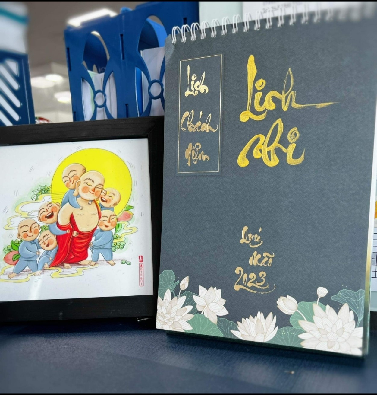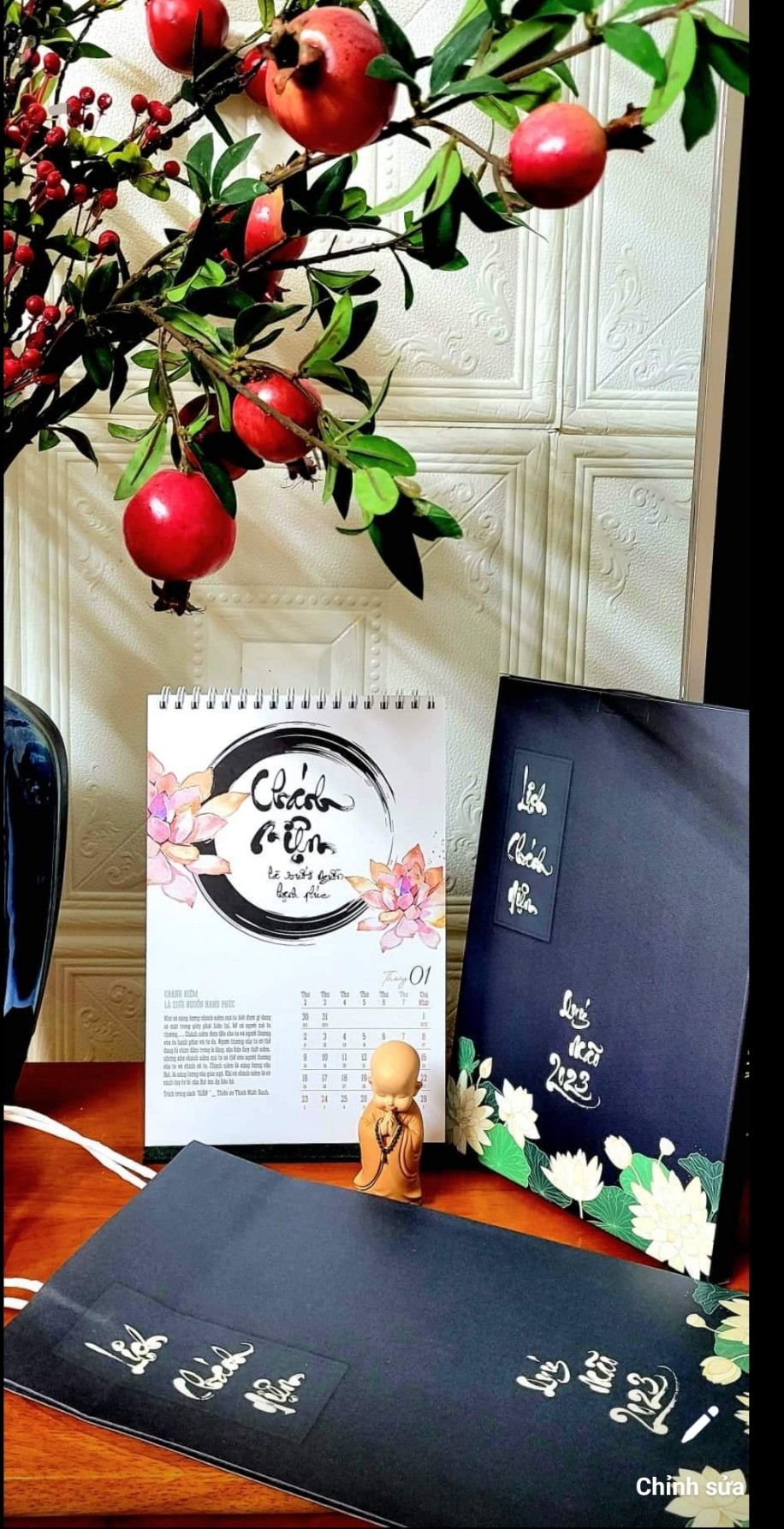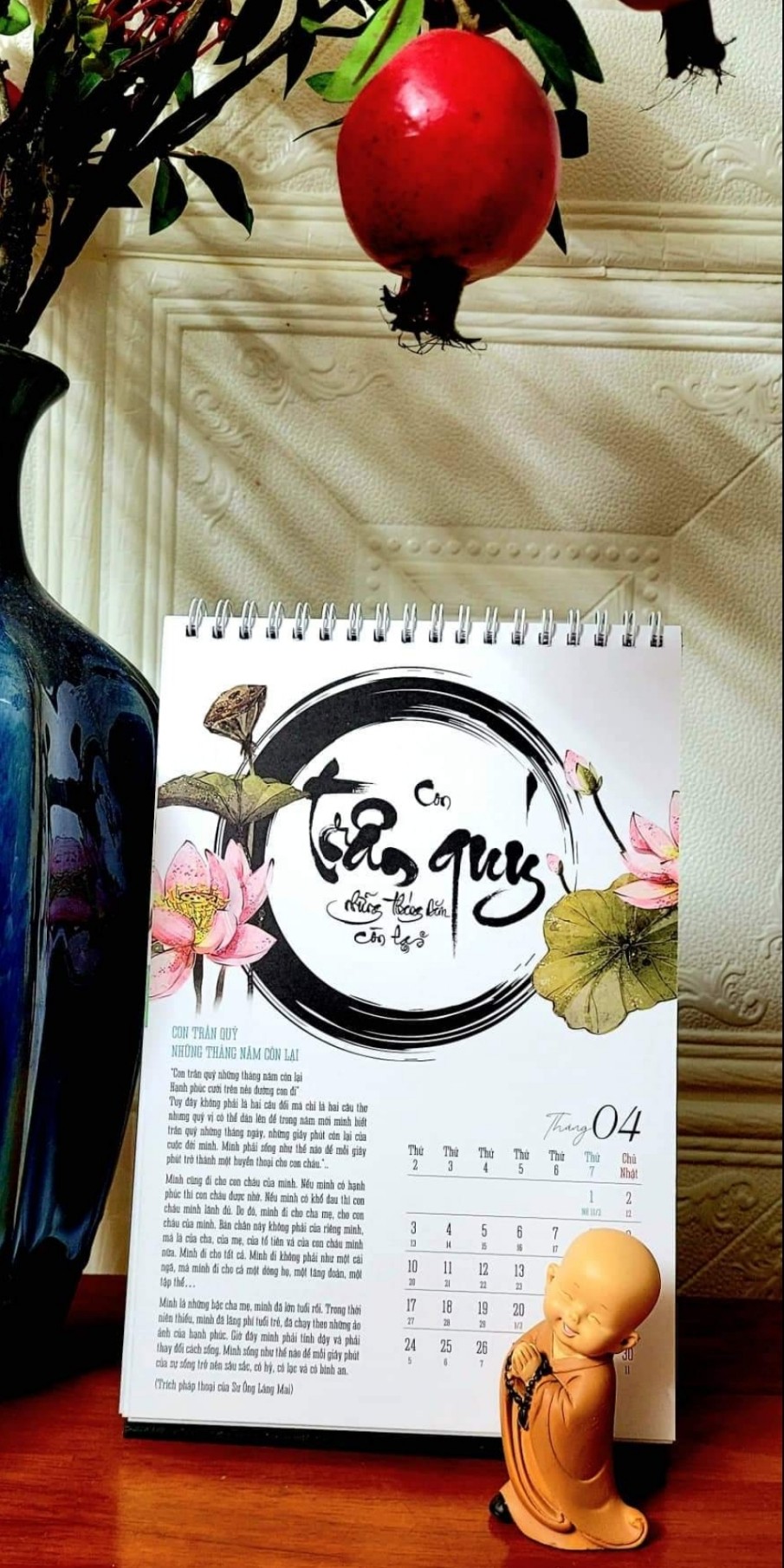 Bộ LỊCH CHÁNH NIỆM 2023 gồm 13 tờ với 12 tháng là 12 câu nói chánh niệm và ý nghĩa từng câu nói để chúng ta có thể sống chánh niệm trong 1 năm. Bộ lịch được VMTP thiết kế riêng và đã có giấy phép xuất bản. Đây là bộ lịch có ý nghĩa, mang hơi thở thiền, hương thiền, từng hơi thở cuộc sống, là một chất liệu bình an trong mỗi giây phút. Mỗi tháng là 1 câu nói, là 1 tác phẩm thư pháp trên nền sen đẹp. Hy vọng với bộ LỊCH CHÁNH NIỆM 2023 sẽ đúng như câu nói CHÁNH NIỆM là suối nguồn hạnh phúc.