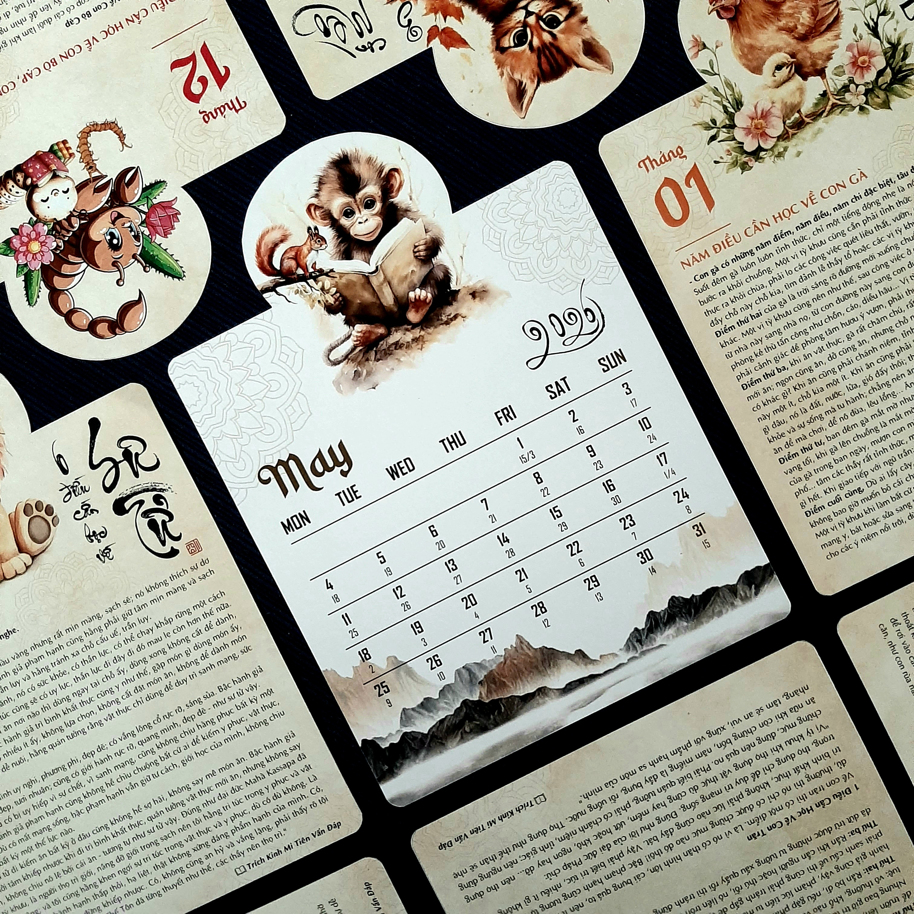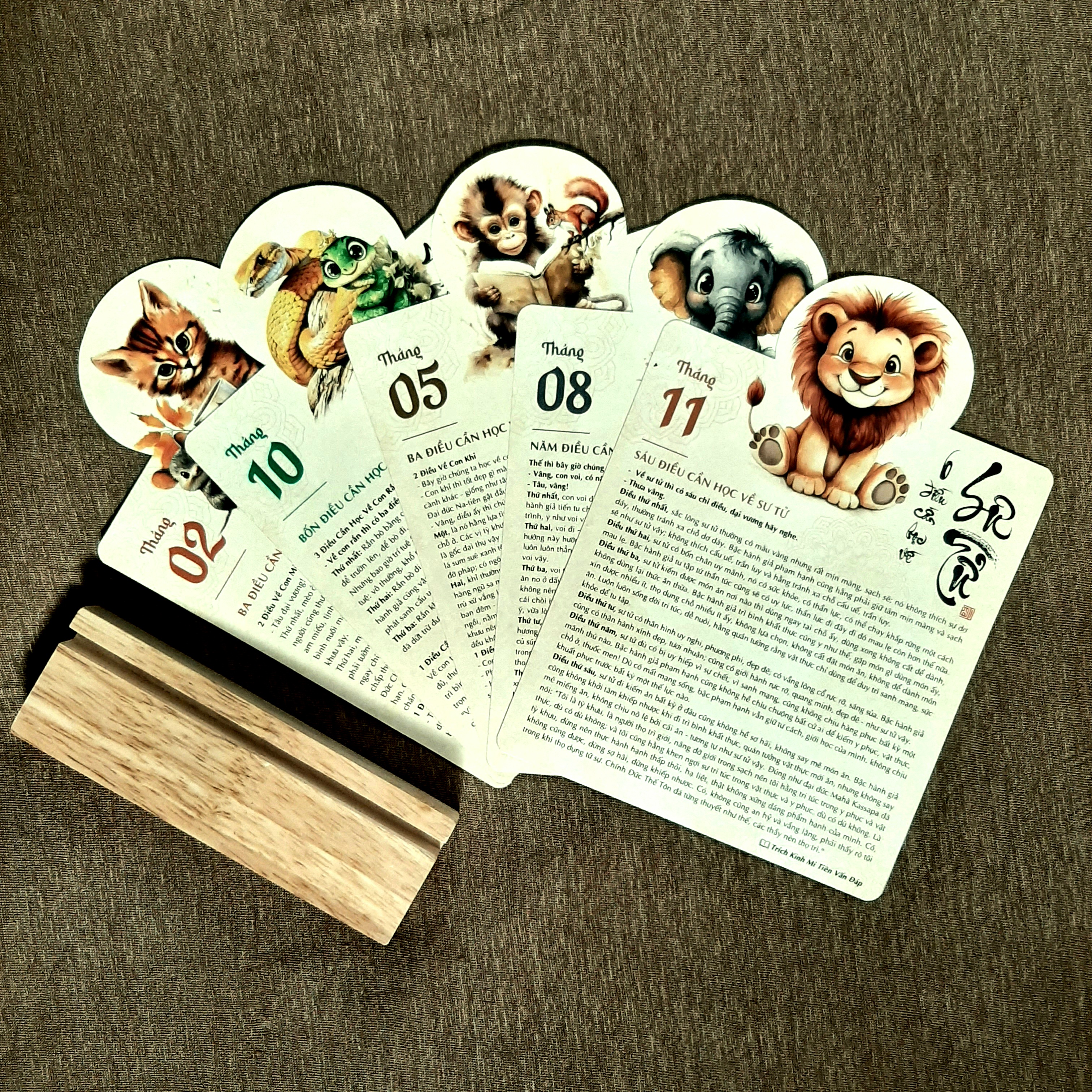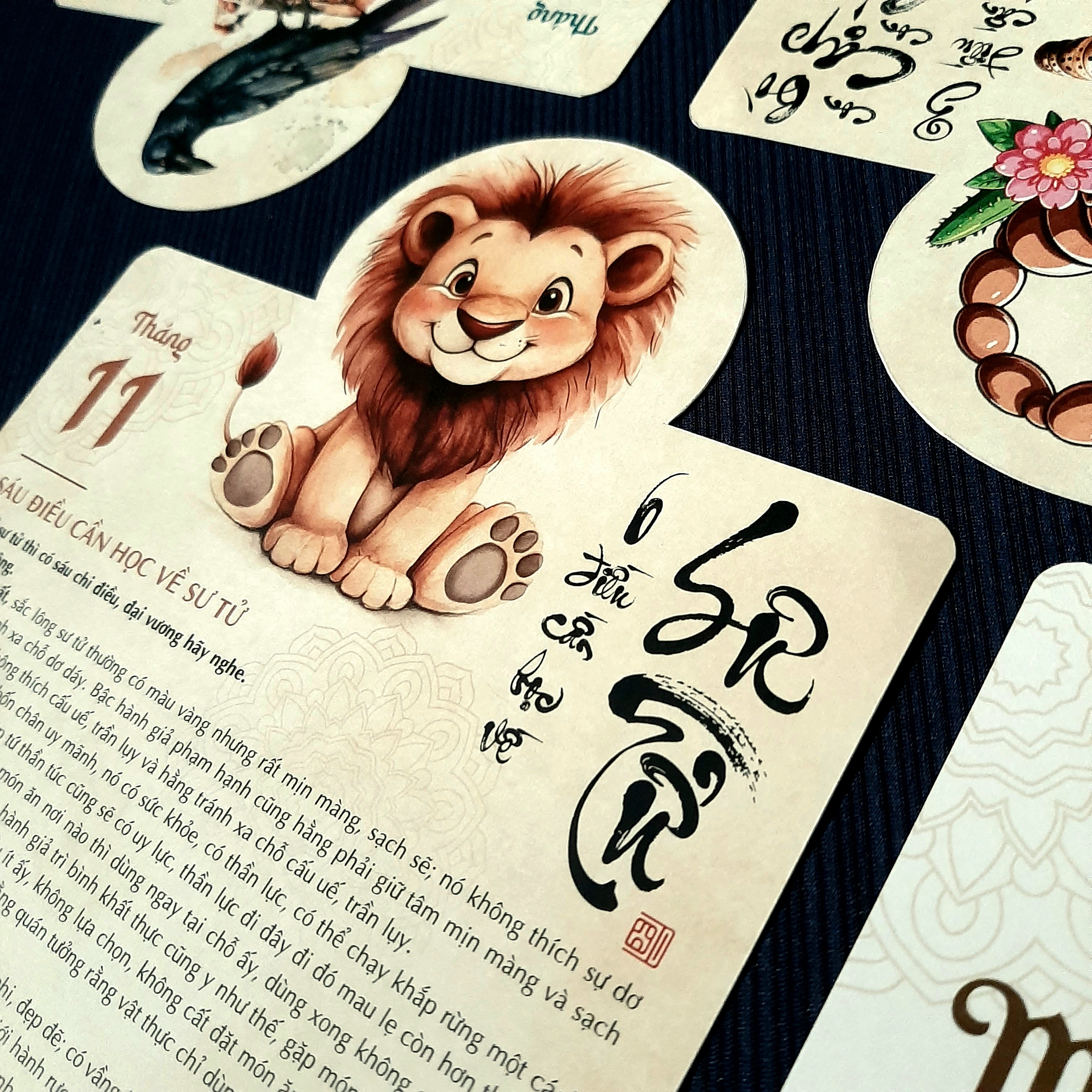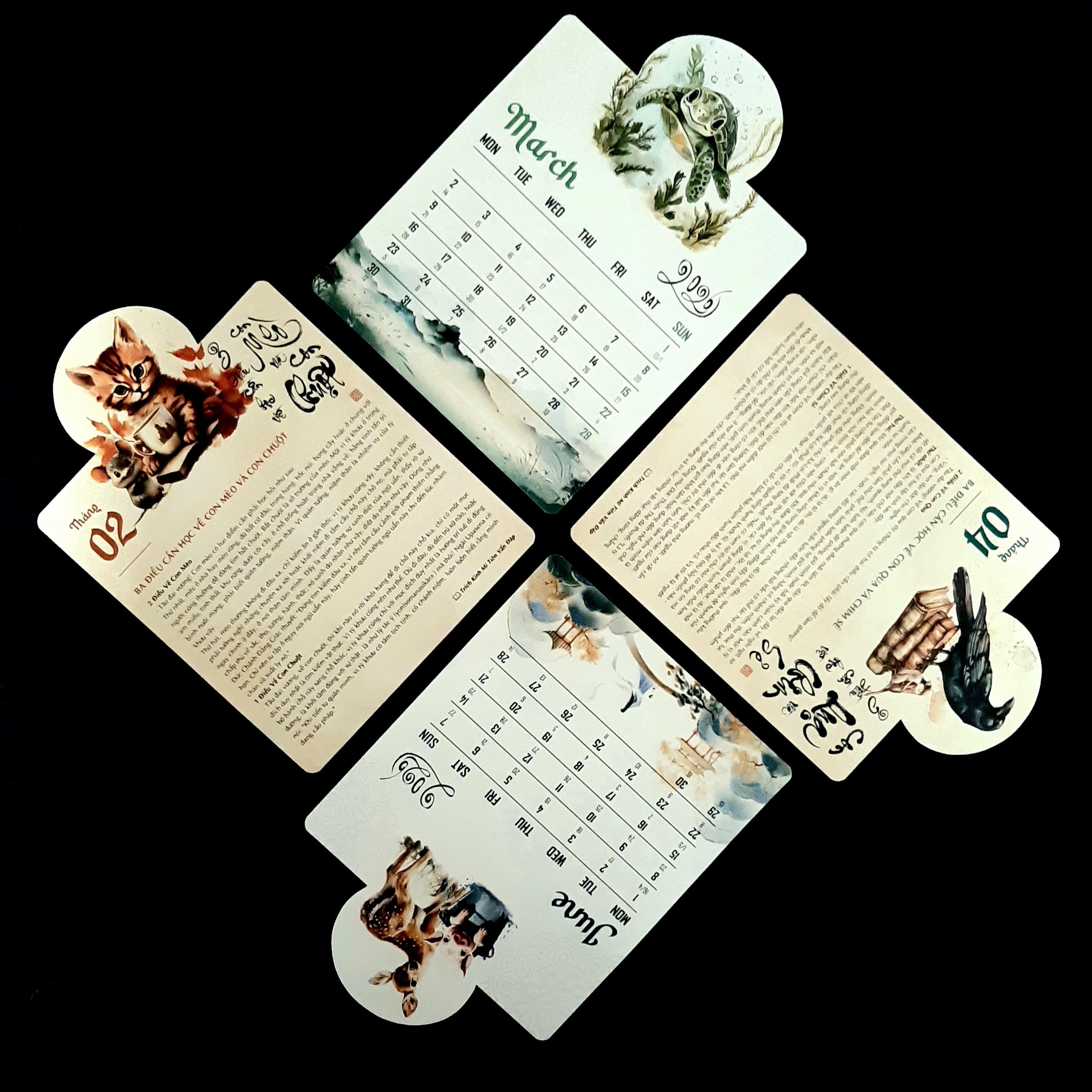 Là lịch, các bạn sẽ được học trong đó những bài học với những đức tính tốt của những con vật như bài học về sư tử uy nghiêm không khuất phục, bài học về con nai không bao giờ quay lại chỗ cũ khi tránh được mũi tên của thợ săn, bài học về con chuột khi ra ngoài chỉ kiếm ăn không màng chuyện khác, bài học về con gà khi ăn vật thực, gà rất chăm chú, rất cảnh giác, nó lấy chân khều vật thực, bươi vật thực ra rồi mới ăn; ngon cũng ăn, dở cũng ăn, nhưng chỗ này một chút, chỗ kia một chút…
