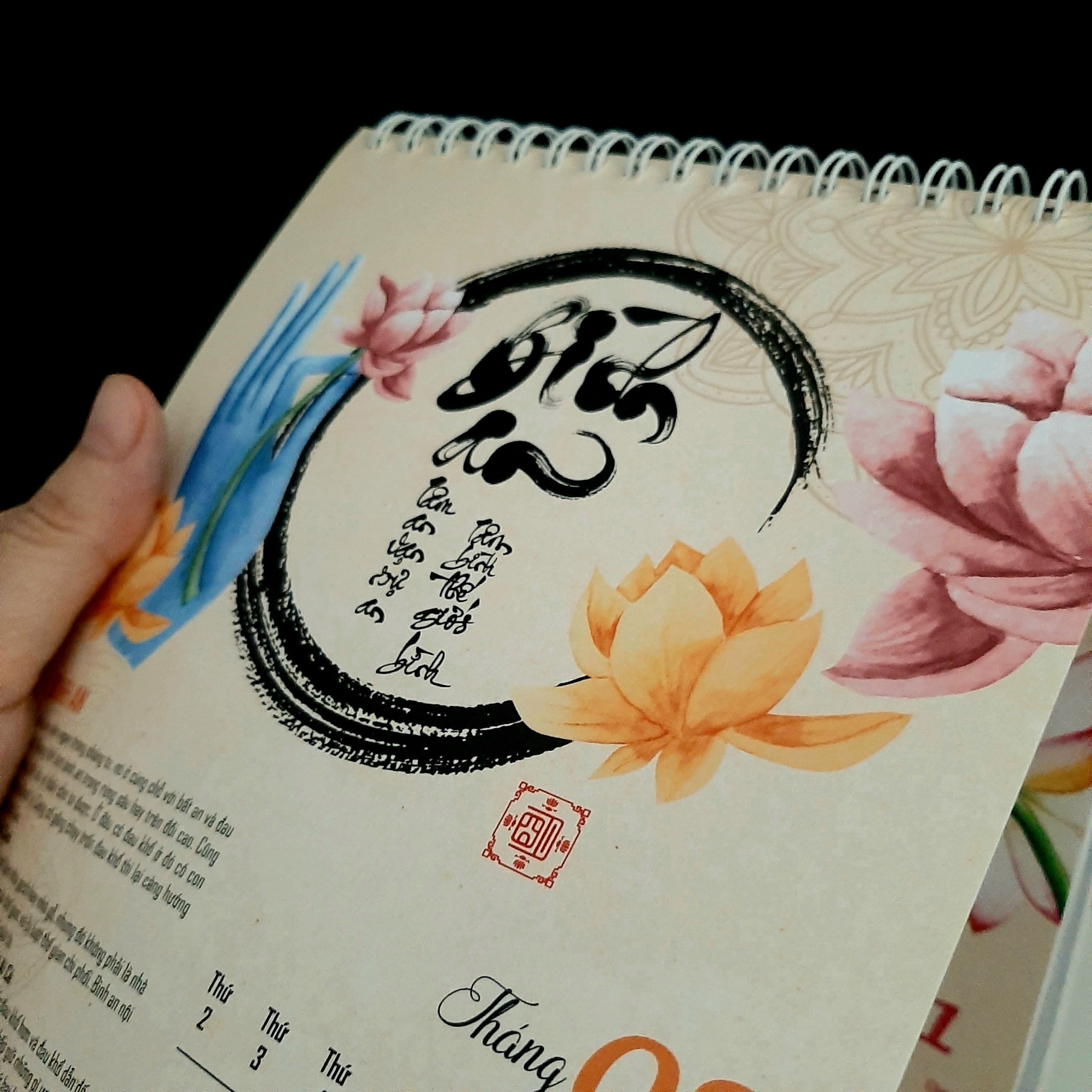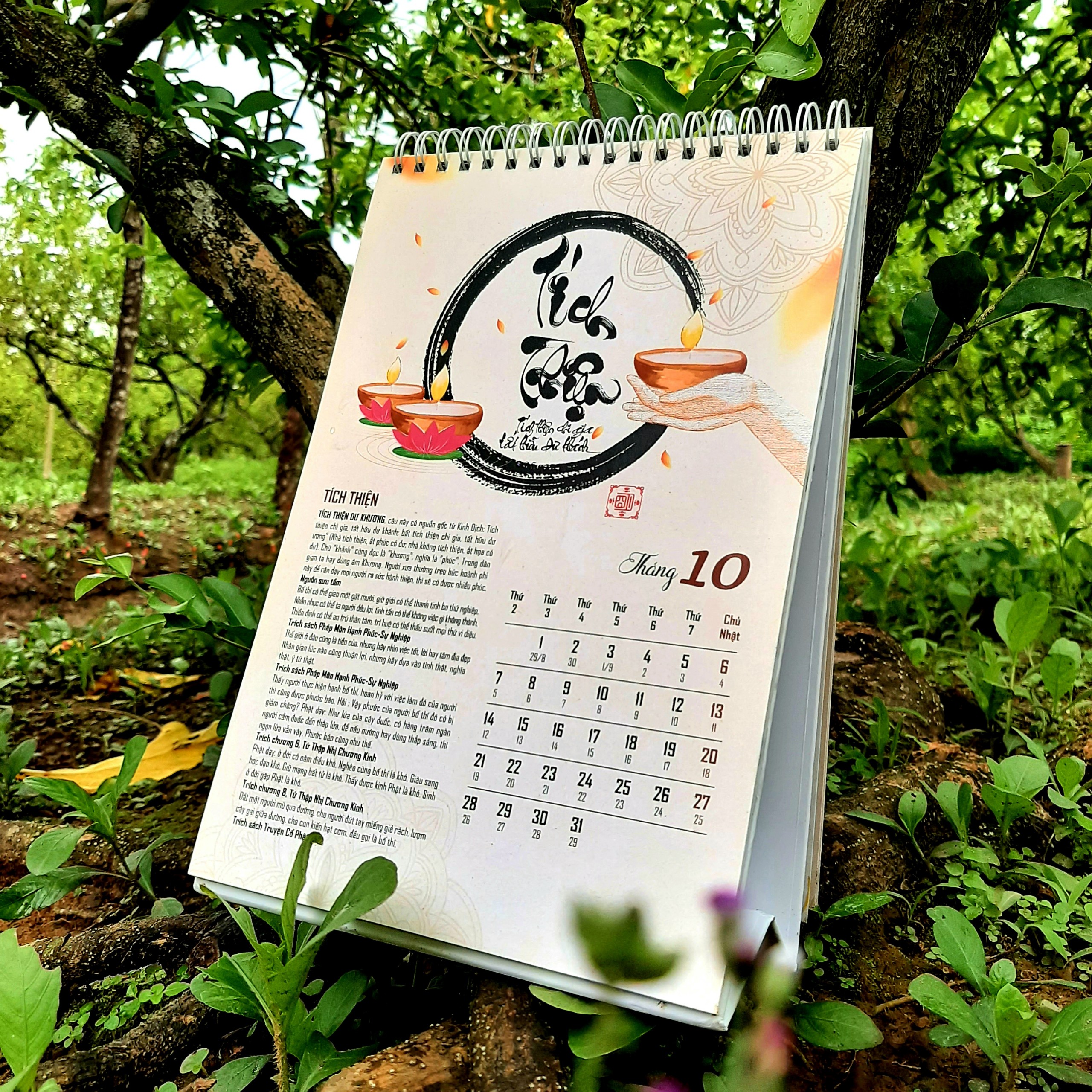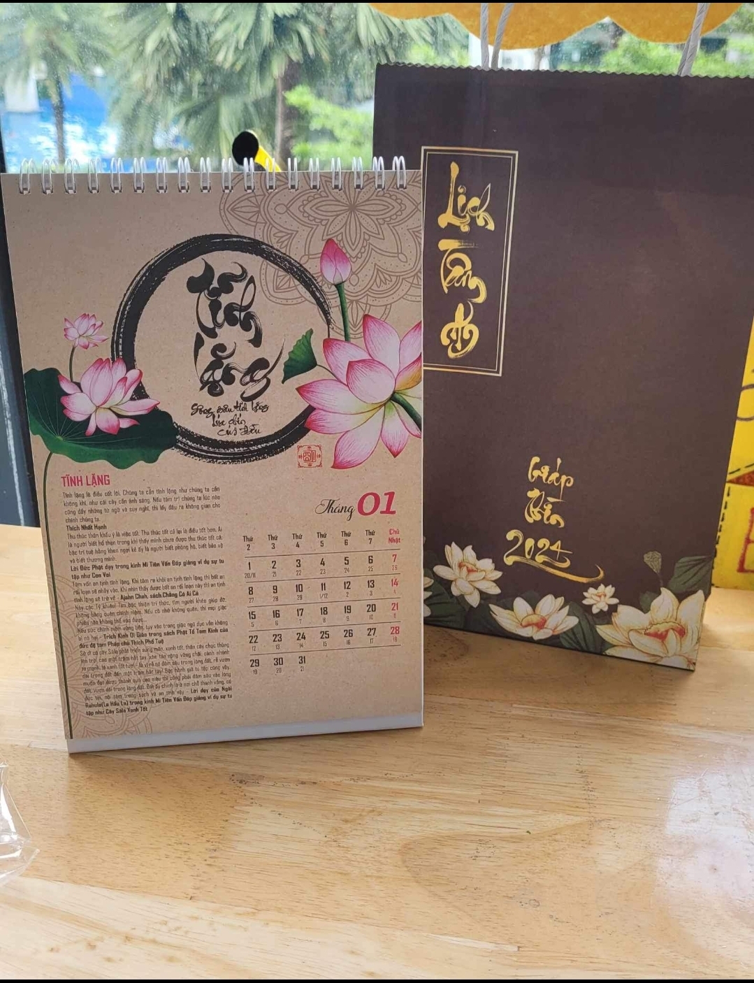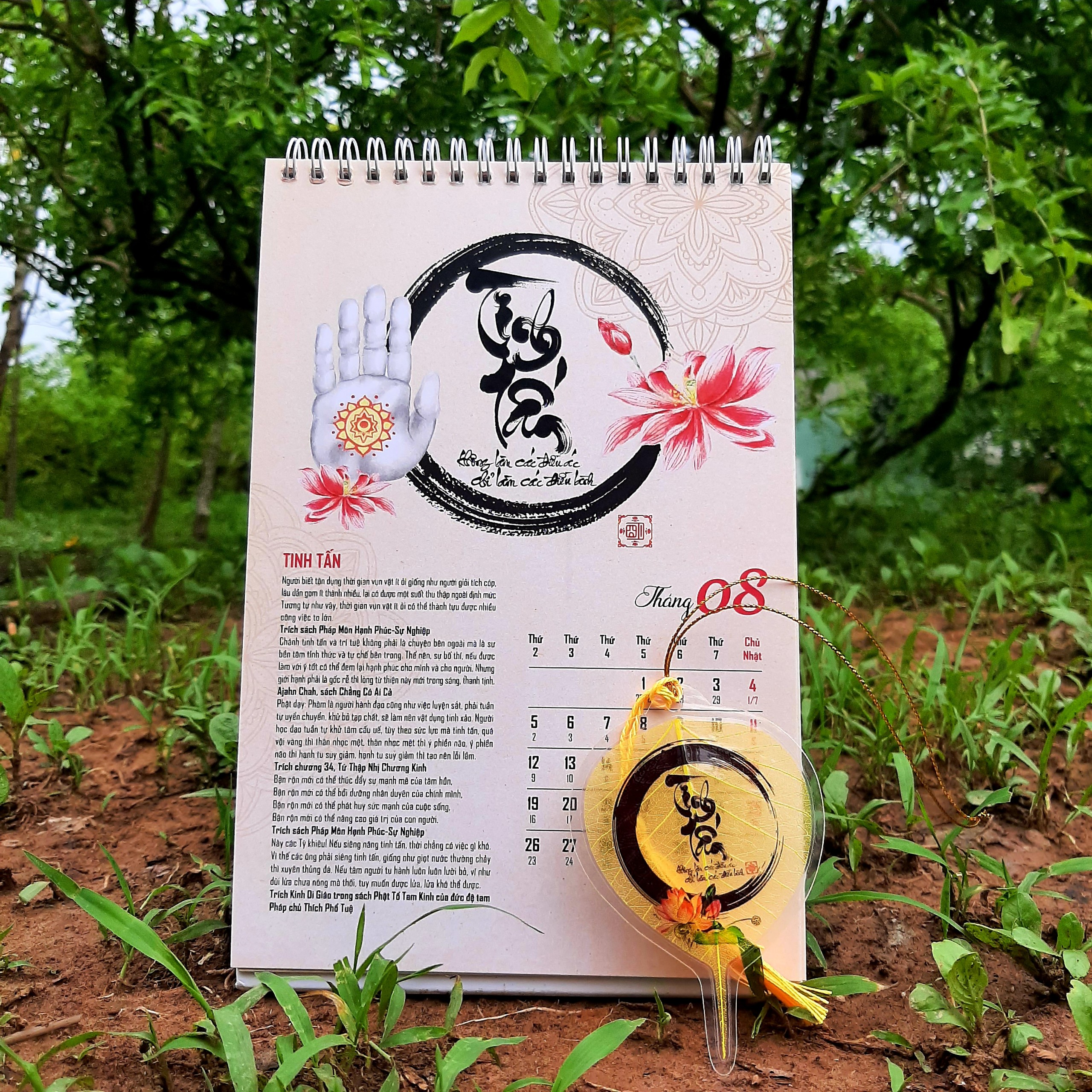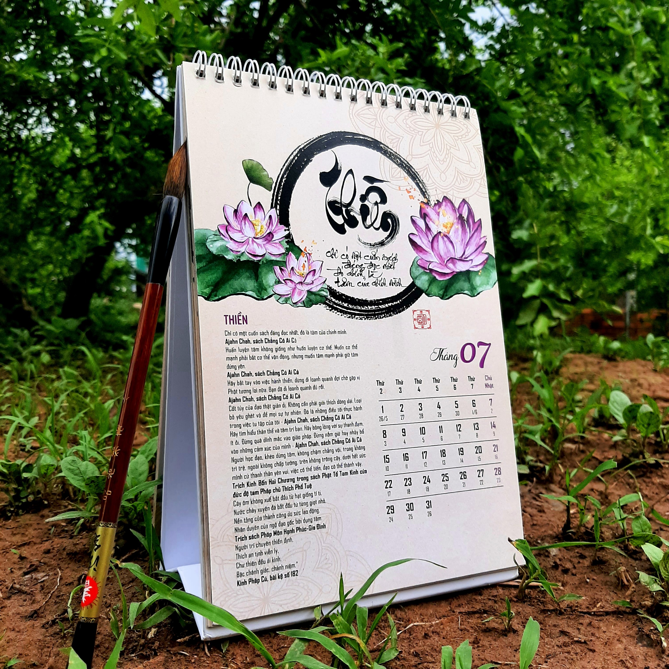 LỊCH TÂM AN 2024 là bộ lịch kết hợp giữa thư pháp và lời Phật dạy trong kinh Phật, và các bài pháp của các thiền sư Ajahn Chah, thiền sư Thích Nhất Hạnh, Hòa thượng Thánh Nghiêm, Hòa thượng Tinh Vân, Đức đệ Tam Pháp chủ Thích Phổ Tuệ, lời dạy của Ngài Lục Tổ Huệ Năng Pháp Bửu Đàn Kinh, lời dạy của các Ngài Xá Lợi Phất, La Hầu La, Các bài pháp, lời dạyđược trích dẫn trong các kinh như Kinh Mi Tiên Vấn Đáp, Kinh Bốn Mươi Hai Chương, Kinh Di Giáo, Tăng Chi Bộ Kinh, Pháp Bửu Đàn Kinh, sách Pháp Môn Hạnh Phúc, sách Chẳng Có Ai Cả, sách Tâm Từ