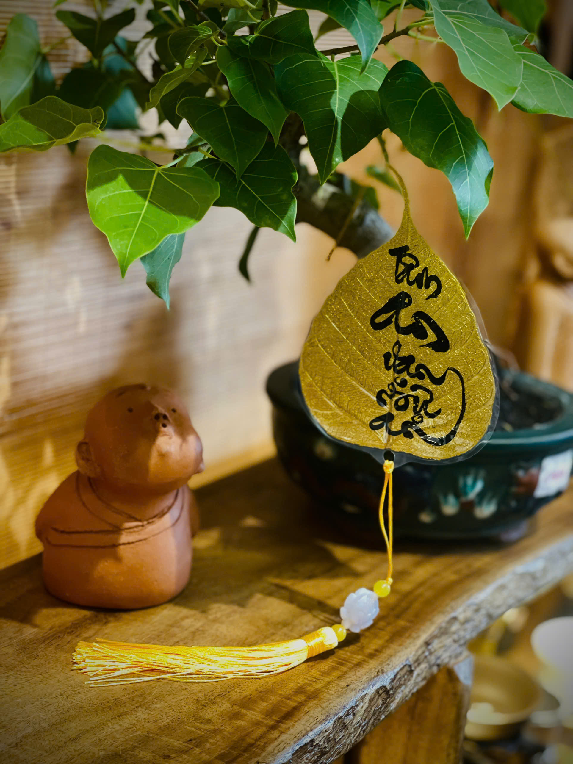 🌿 Trong Phật giáo, lá bồ đề tượng trưng cho trí tuệ và sự giác ngộ. Khi được dát vàng sang trọng và khắc họa bằng nét thư pháp thủ công tinh tế, mỗi chiếc lá không chỉ là một tác phẩm nghệ thuật mà còn là lá bùa bình an, may mắn cho gia chủ.