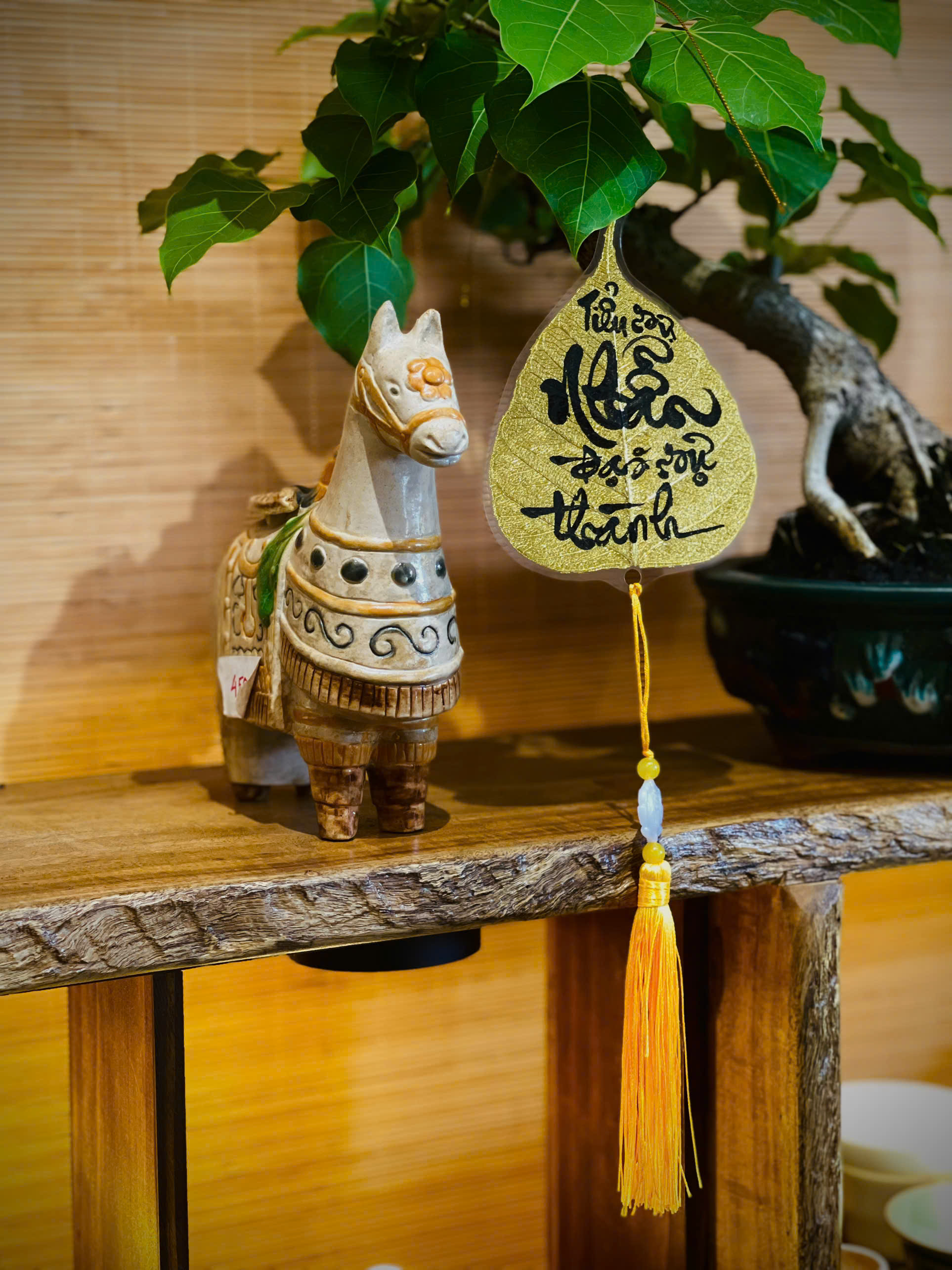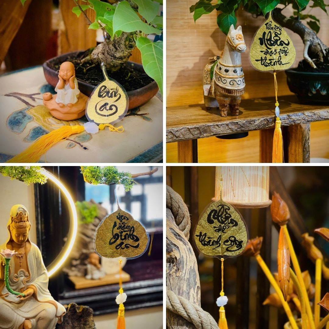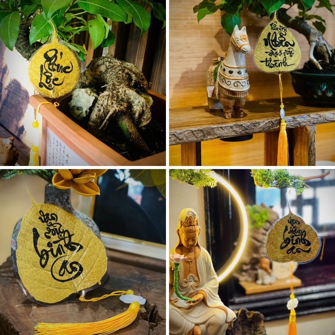 🌿 Trong Phật giáo, lá bồ đề tượng trưng cho trí tuệ và sự giác ngộ. Khi được dát vàng sang trọng và khắc họa bằng nét thư pháp thủ công tinh tế, mỗi chiếc lá không chỉ là một tác phẩm nghệ thuật mà còn là lá bùa bình an, may mắn cho gia chủ.