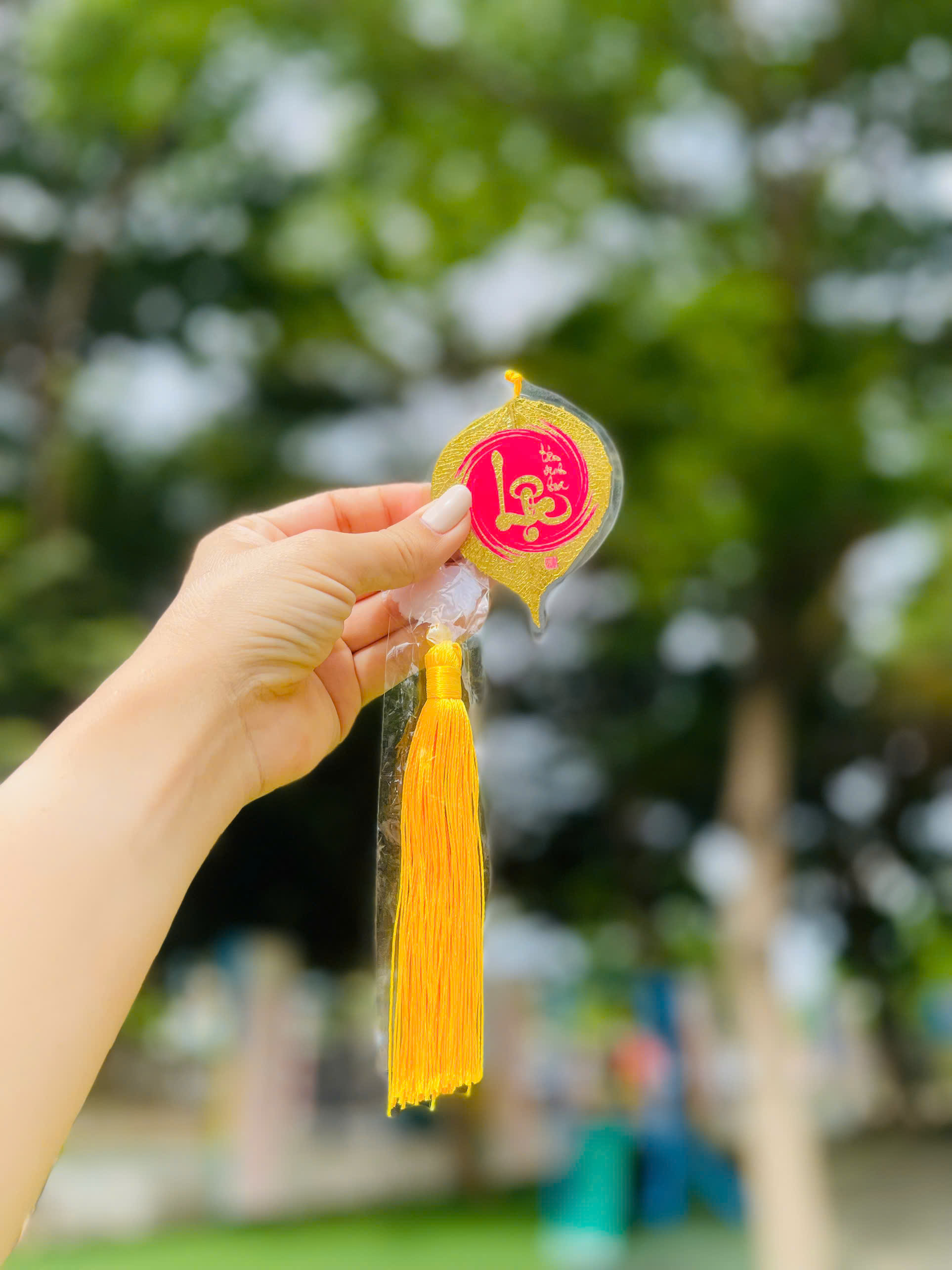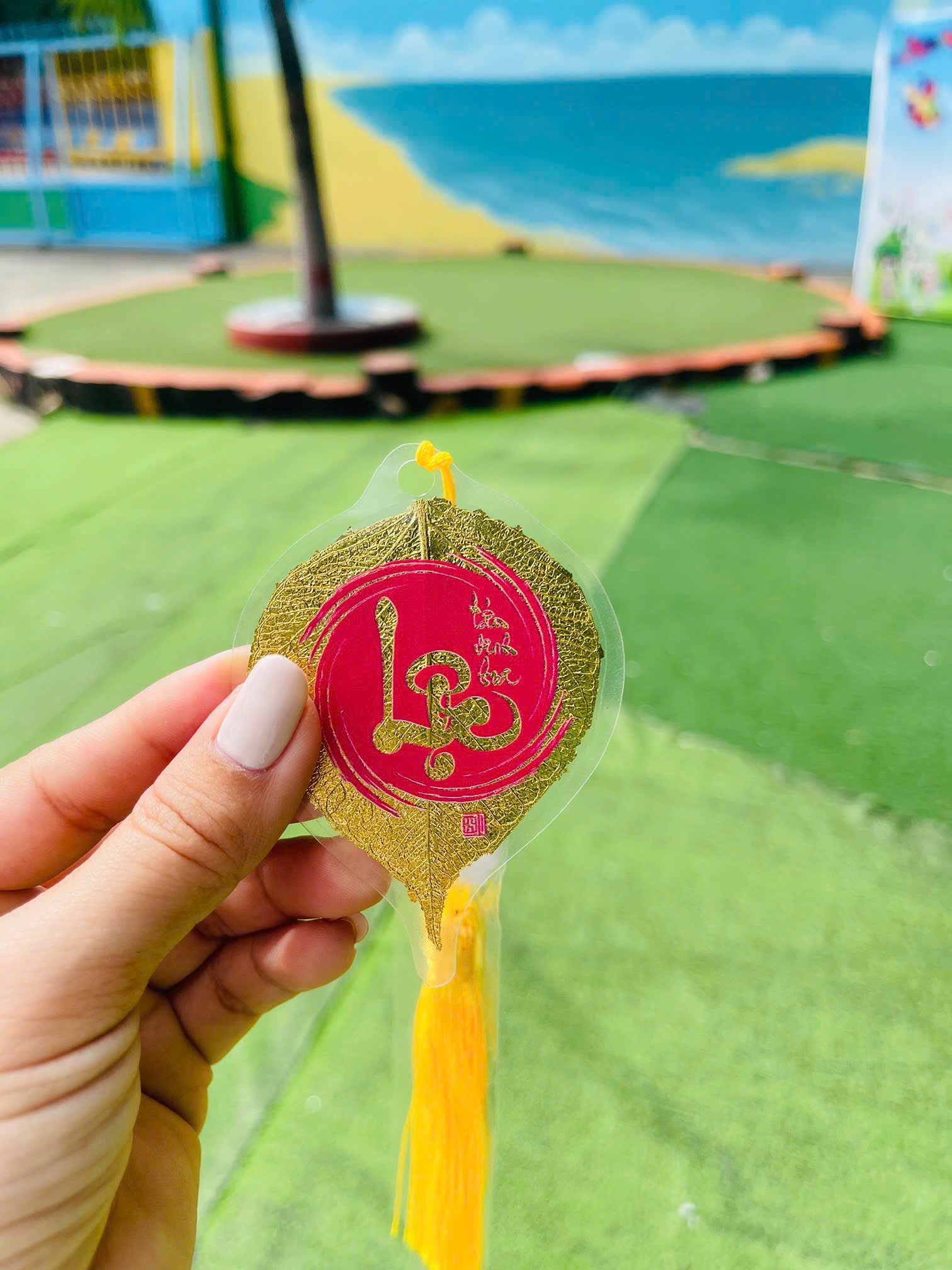 - Chất liệu tự nhiên: Lá bồ đề thật, được ép plastic trong suốt, dát vàng tinh tế, sang trọng.