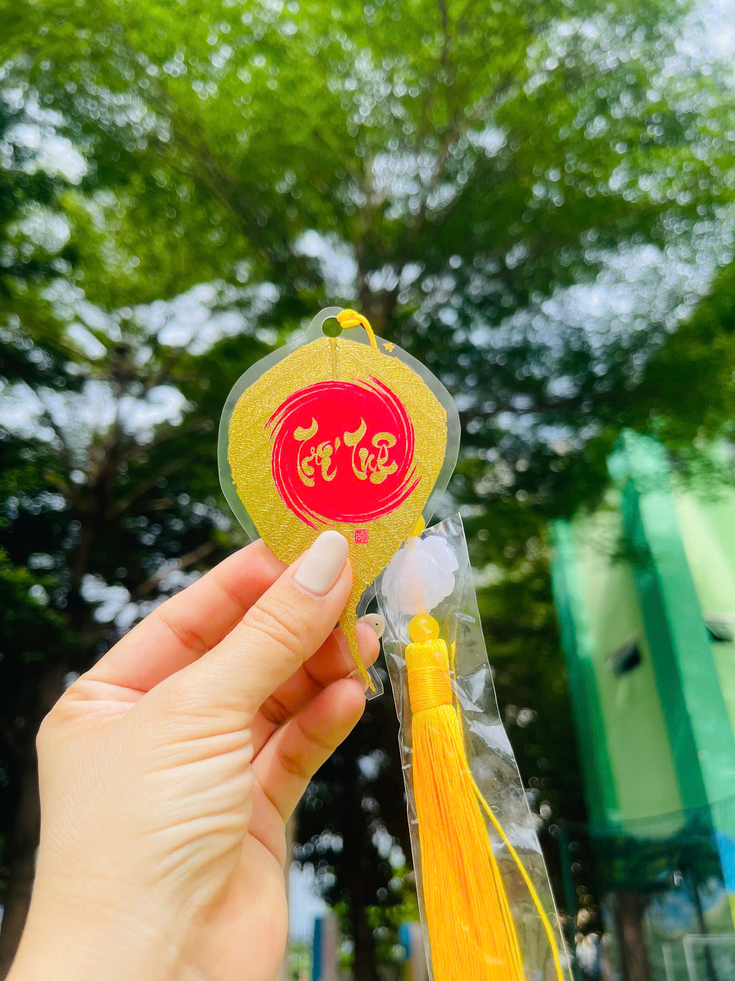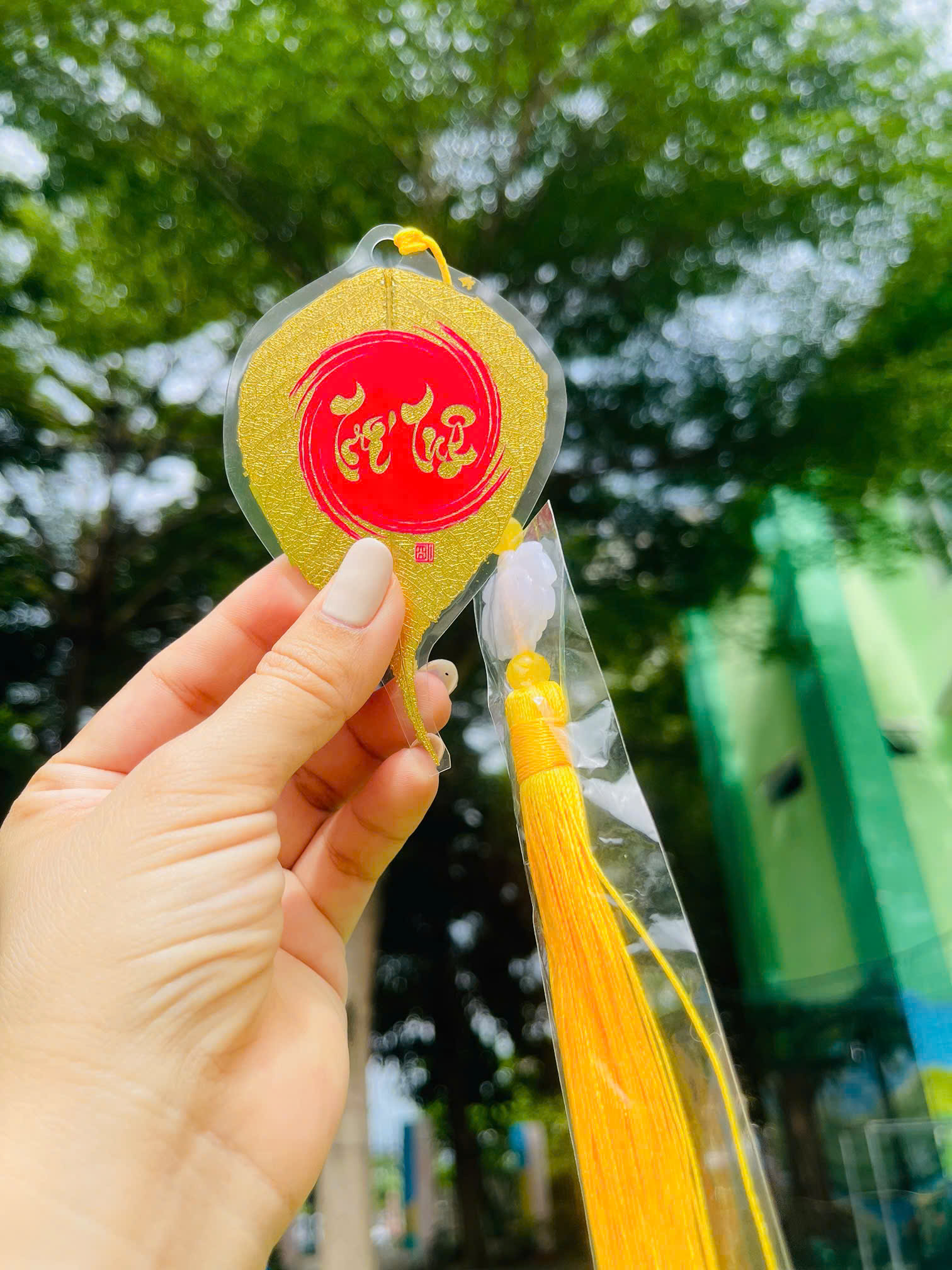 - Chất liệu tự nhiên: Lá bồ đề thật, được ép plastic trong suốt, dát vàng tinh tế, sang trọng.