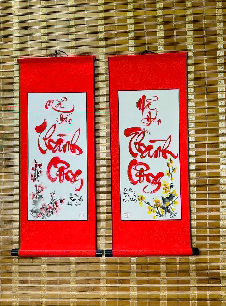Liễn thư pháp 30x80 cm chữ MÃ ĐÁO THÀNH CÔNG