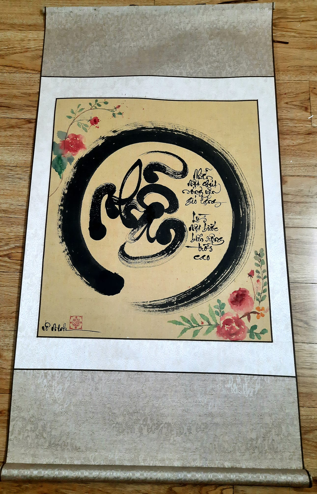 Một tác phẩm liễn thư pháp vòng tròn ZEN, bên trong là chữ NHẪN, tác phẩm được nhiều người ưa thích, mua