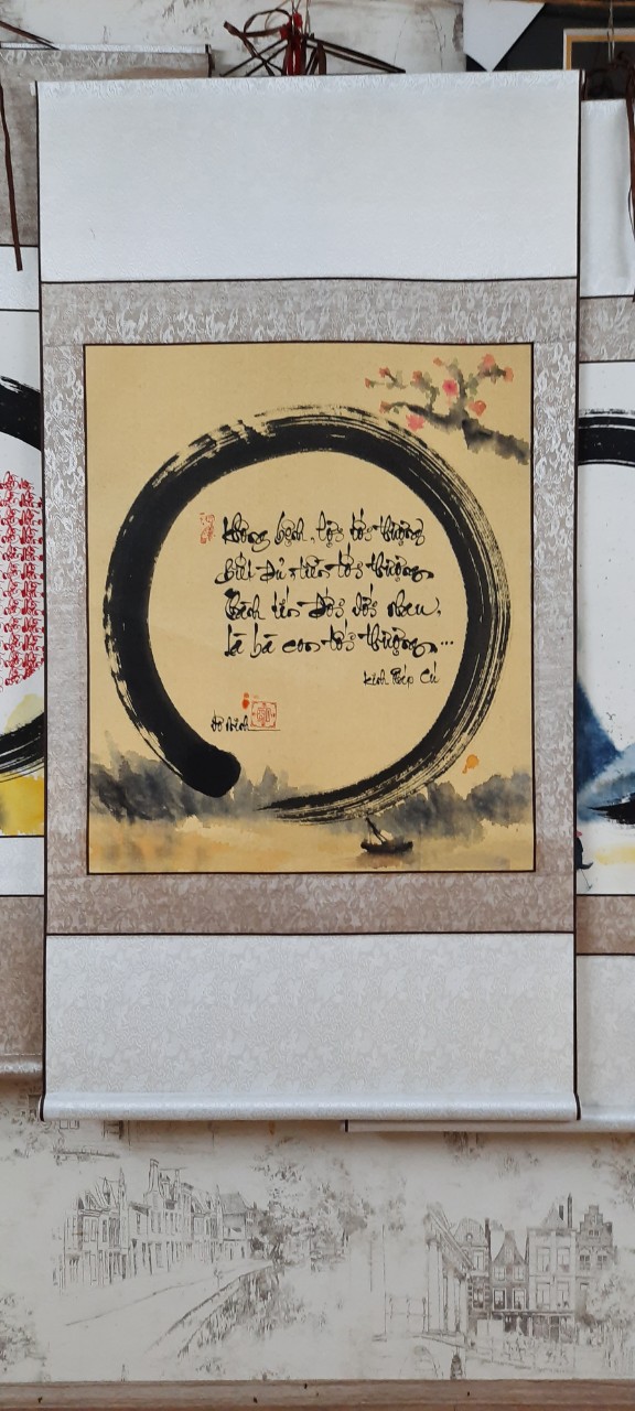 Một tác phẩm Liễn thư pháp vòng tròn ZEN ghi 1 bài kệ Kinh Pháp Cú