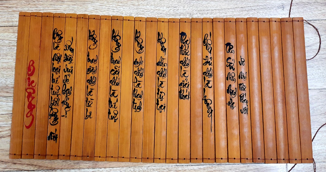 chữ viết bởi VÔ MINH THƯ PHÁP, trên thị trường có bán sách thẻ tre có chữ sẵn với nội dung phong phú như :Trà Kinh , Đại Bi Chú , Tâm Kinh , Binh Pháp Tôn Tử, nhưng VÔ MINH THƯ PHÁP chỉ mua sách thẻ tre không chữ, rồi viết chữ mình lên. Các bạn quan tâm thì đặt hàng VÔ MINH THƯ PHÁP viết, mỗi tác phẩm không quá 200 chữ.