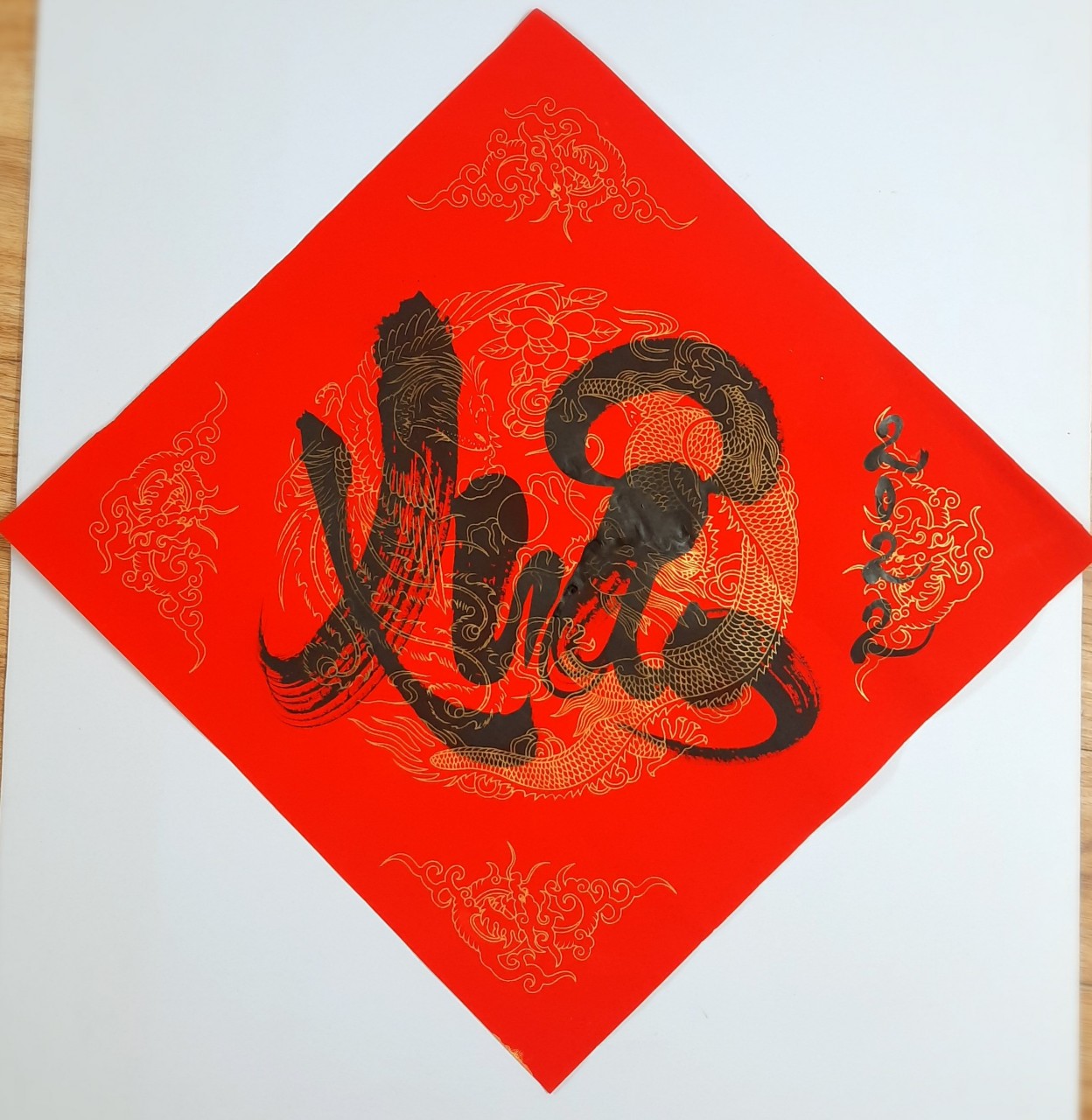 CHẤT LIỆU: Giấy in long phụng chất liệu xuyến chỉ. Giấy cung đình chất liệu xuyến chỉ nhuộm sáp.