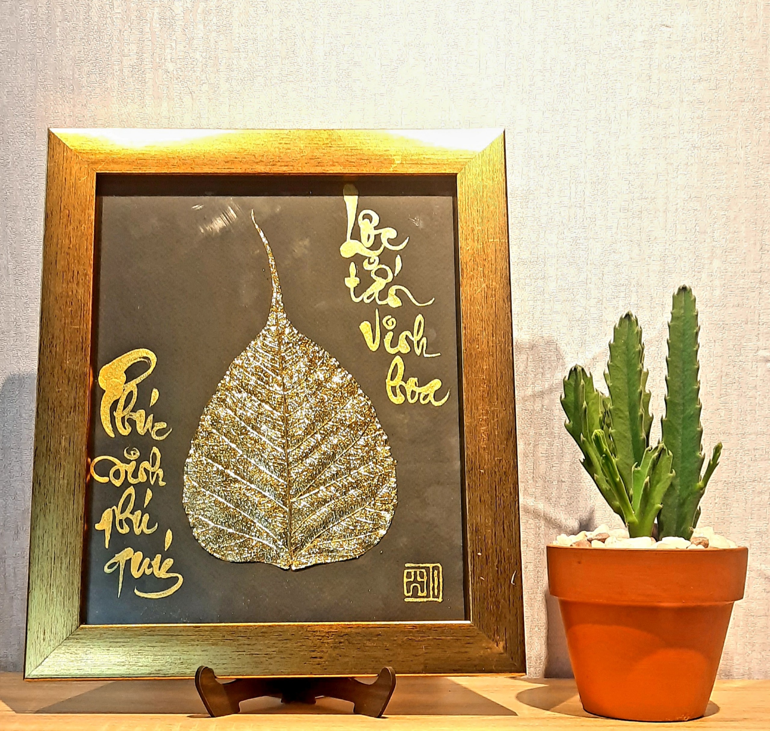 Sự kết hợp giữa thư pháp và lá bồ đề là một món quà ý nghĩa để dành tặng người thân, bạn bè, đối tác, và để trưng bày nơi phòng làm việc, phòng khách, chỗ thờ tự rất đẹp, ý nghĩa
