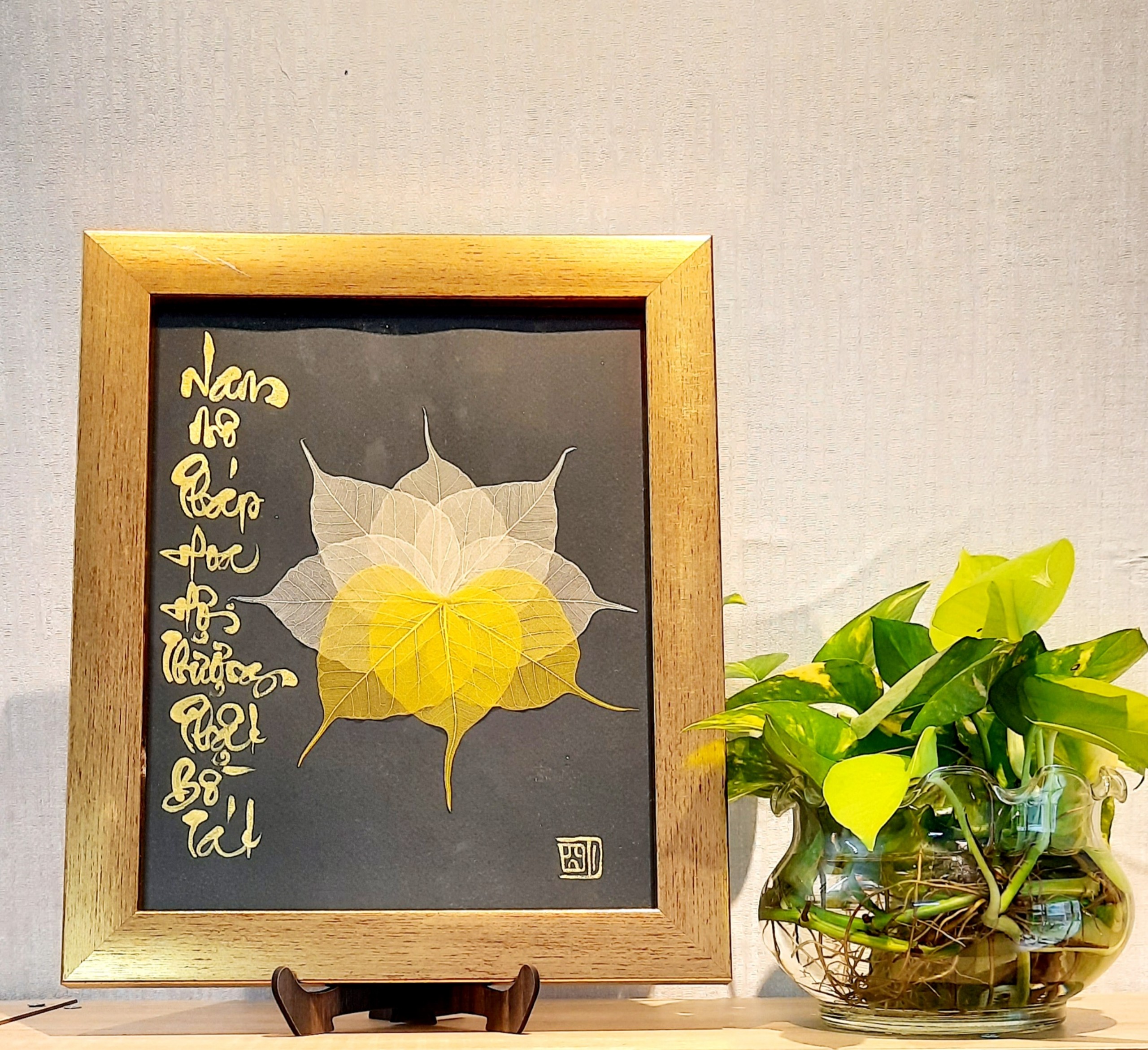 Sự kết hợp giữa thư pháp và lá bồ đề là một món quà ý nghĩa để dành tặng người thân, bạn bè, đối tác, và để trưng bày nơi phòng làm việc, phòng khách, chỗ thờ tự rất đẹp, ý nghĩa