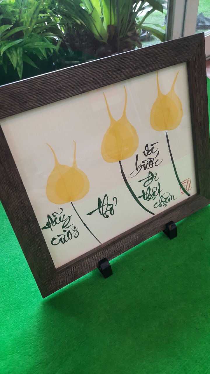 Sự kết hợp giữa thư pháp và lá bồ đề là một món quà ý nghĩa để dành tặng người thân, bạn bè, đối tác, và để trưng bày nơi phòng làm việc, phòng khách, chỗ thờ tự rất đẹp, ý nghĩa