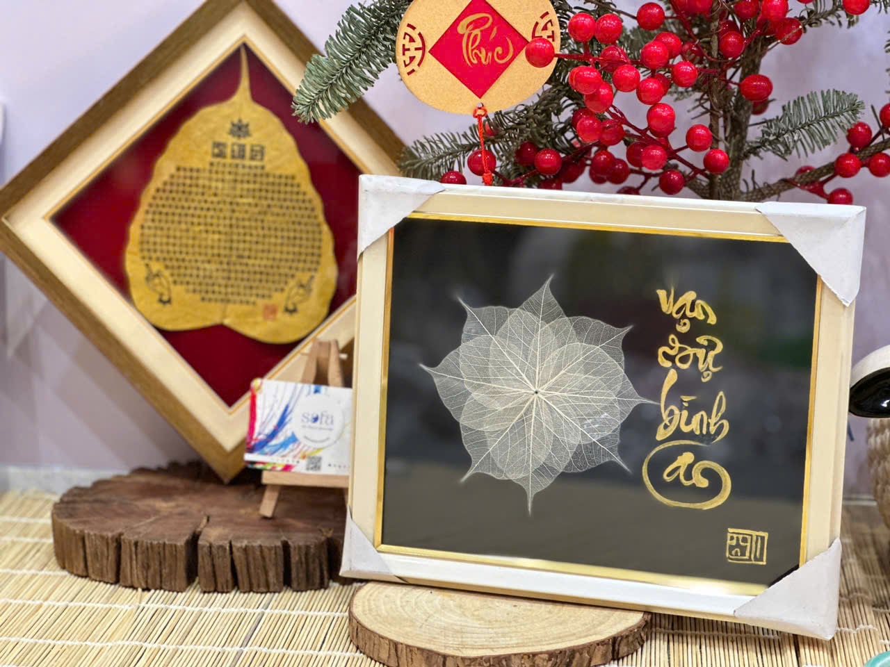 Sự kết hợp giữa thư pháp và lá bồ đề là một món quà ý nghĩa để dành tặng người thân, bạn bè, đối tác, và để trưng bày nơi phòng làm việc, phòng khách, chỗ thờ tự rất đẹp, ý nghĩa