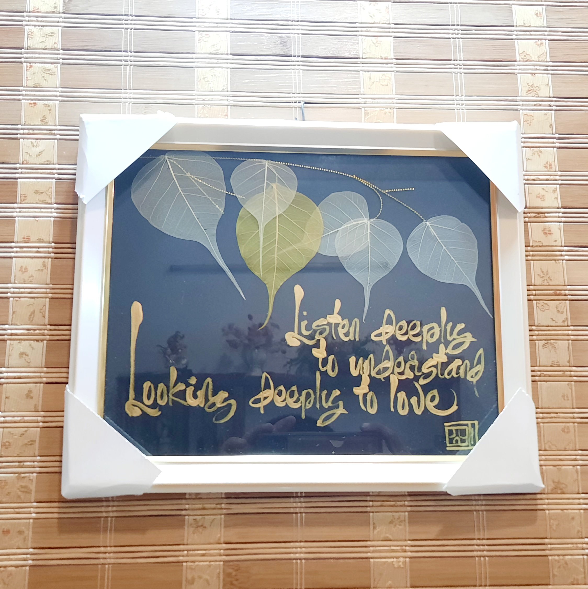 Sự kết hợp giữa thư pháp và lá bồ đề là một món quà ý nghĩa để dành tặng người thân, bạn bè, đối tác, và để trưng bày nơi phòng làm việc, phòng khách, chỗ thờ tự rất đẹp, ý nghĩa