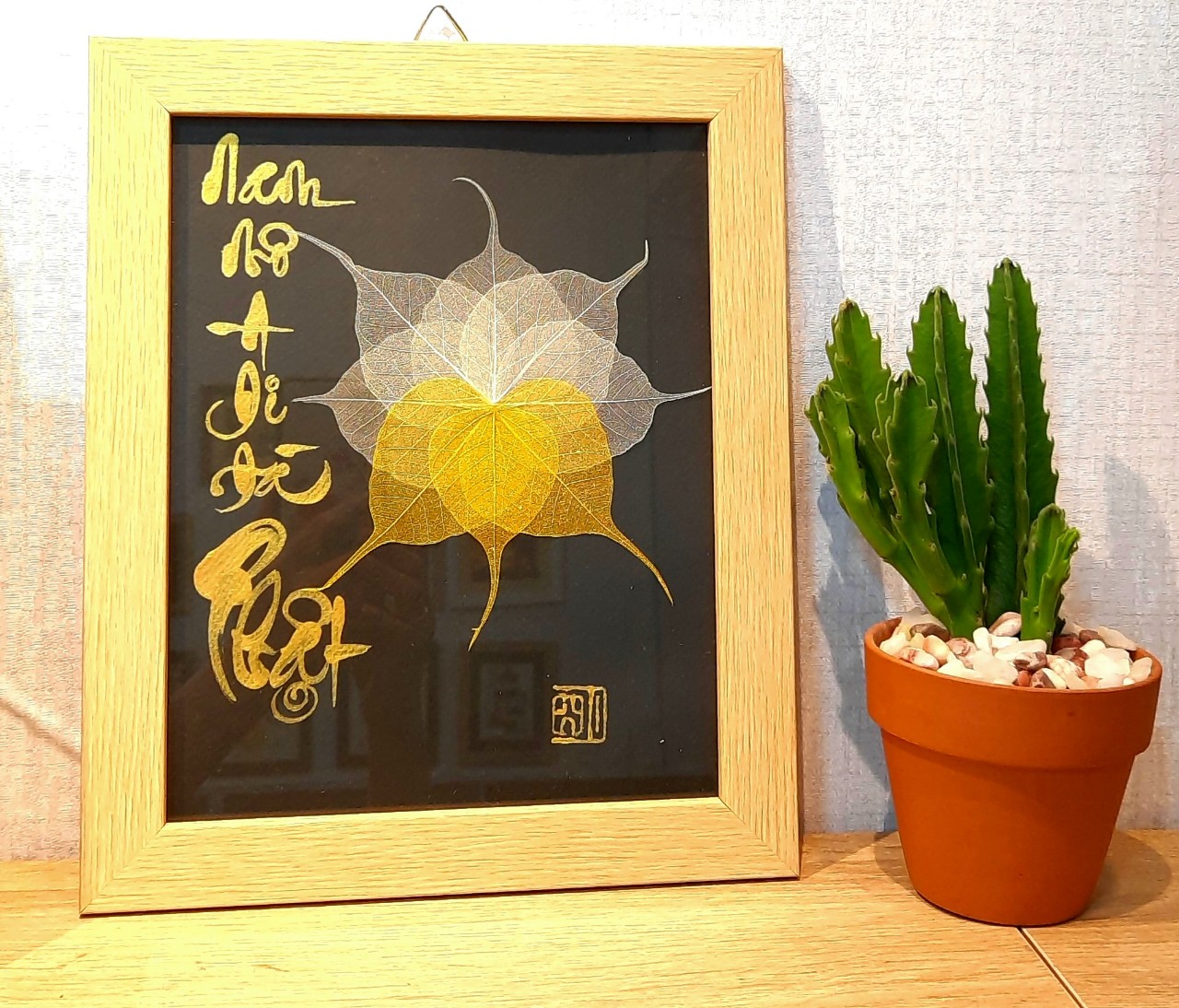 Sự kết hợp giữa thư pháp và lá bồ đề là một món quà ý nghĩa để dành tặng người thân, bạn bè, đối tác, và để trưng bày nơi phòng làm việc, phòng khách, chỗ thờ tự rất đẹp, ý nghĩa