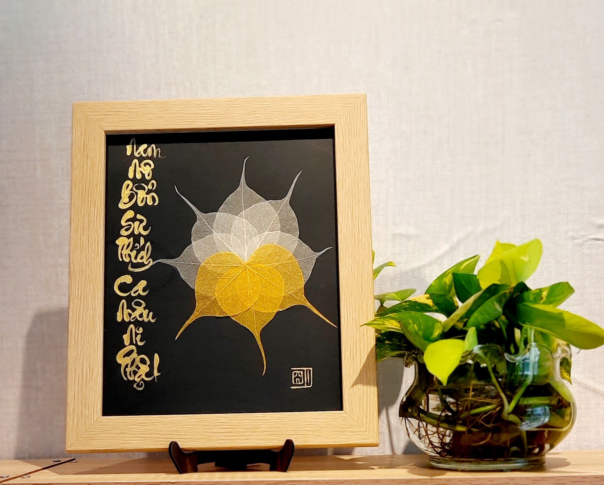 Sự kết hợp giữa thư pháp và lá bồ đề là một món quà ý nghĩa để dành tặng người thân, bạn bè, đối tác, và để trưng bày nơi phòng làm việc, phòng khách, chỗ thờ tự rất đẹp, ý nghĩa