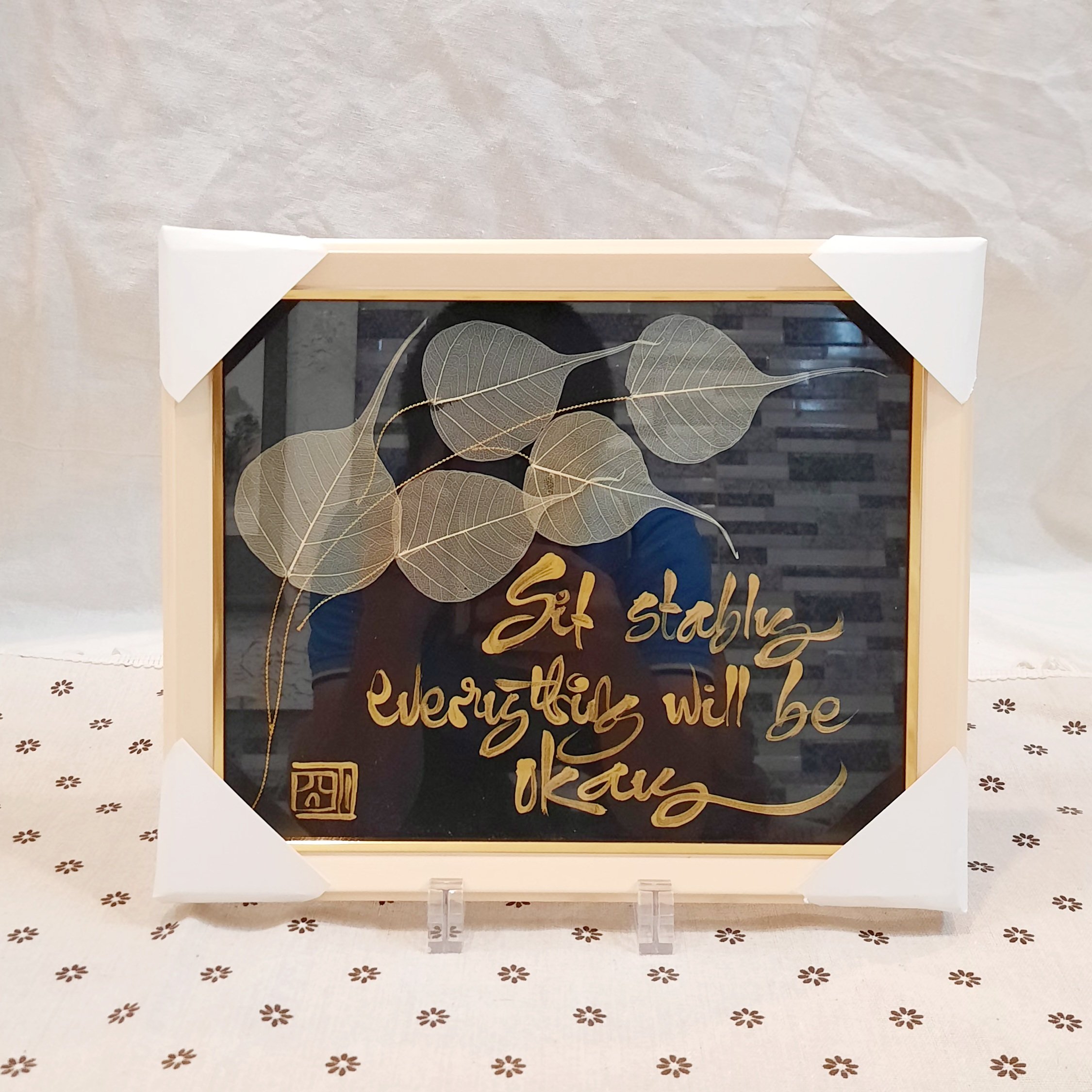 Sự kết hợp giữa thư pháp và lá bồ đề là một món quà ý nghĩa để dành tặng người thân, bạn bè, đối tác, và để trưng bày nơi phòng làm việc, phòng khách, chỗ thờ tự rất đẹp, ý nghĩa