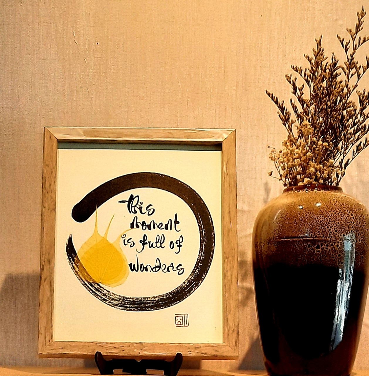 Sự kết hợp giữa thư pháp và lá bồ đề là một món quà ý nghĩa để dành tặng người thân, bạn bè, đối tác, và để trưng bày nơi phòng làm việc, phòng khách, chỗ thờ tự rất đẹp, ý nghĩa