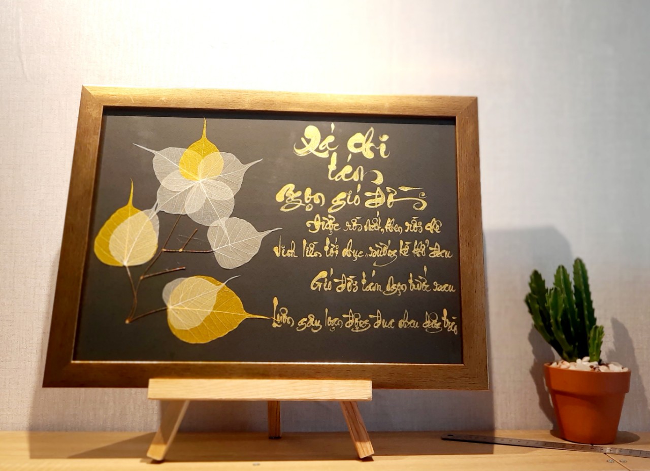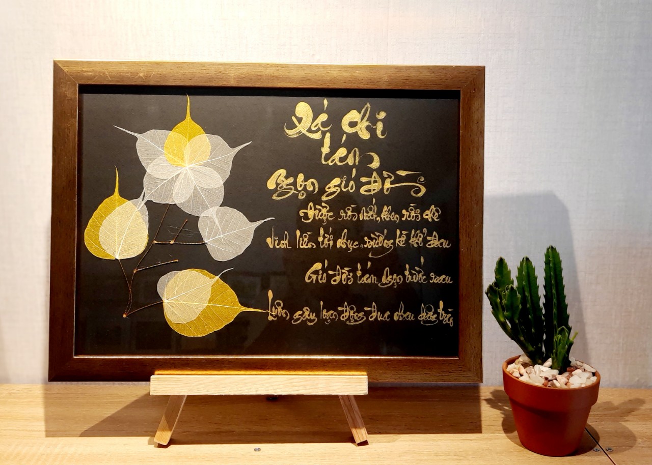Sự kết hợp giữa thư pháp và lá bồ đề là một món quà ý nghĩa để dành tặng người thân, bạn bè, đối tác, và để trưng bày nơi phòng làm việc, phòng khách, chỗ thờ tự rất đẹp, ý nghĩa