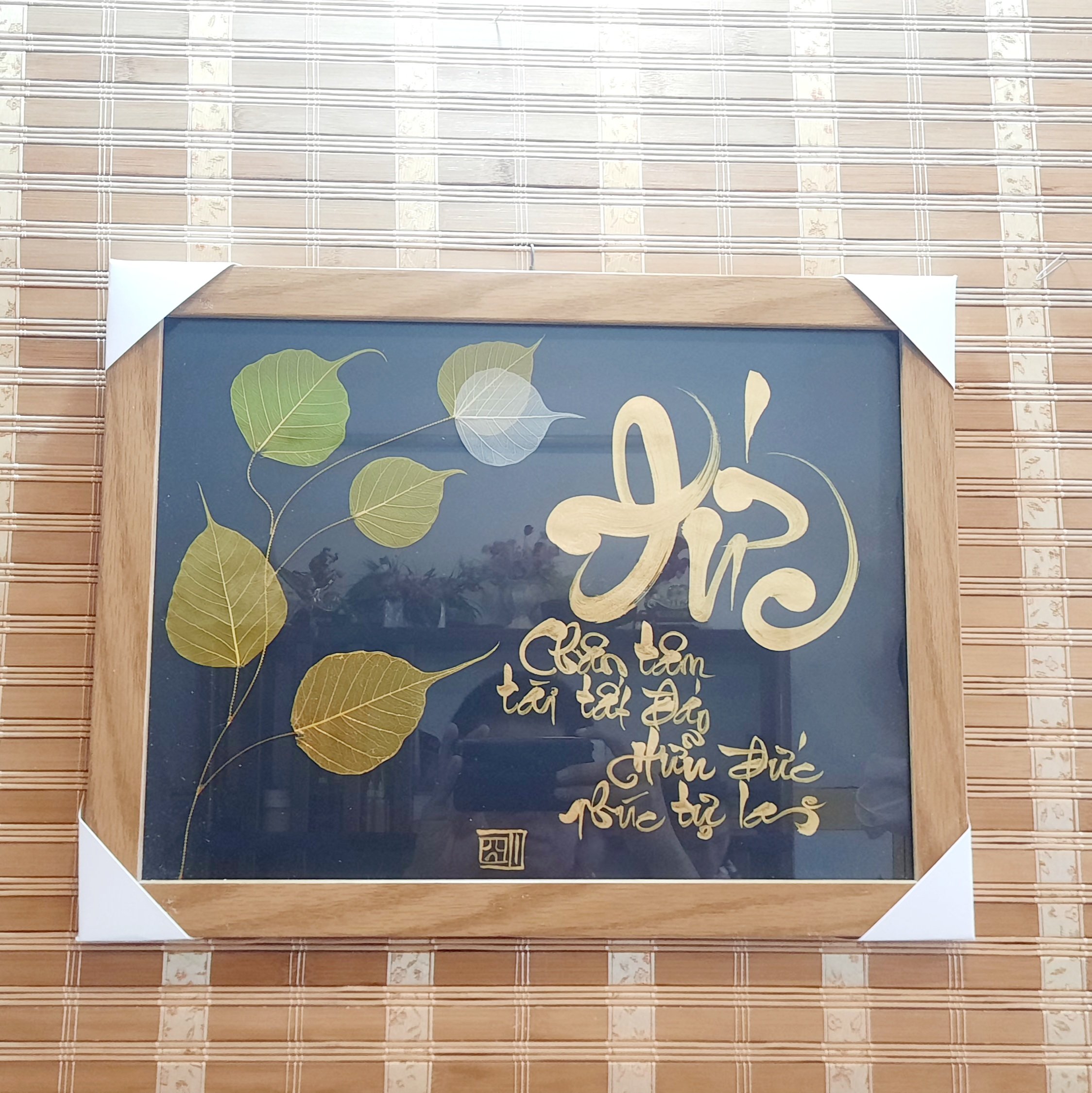 Sự kết hợp giữa thư pháp và lá bồ đề là một món quà ý nghĩa để dành tặng người thân, bạn bè, đối tác, và để trưng bày nơi phòng làm việc, phòng khách, chỗ thờ tự rất đẹp, ý nghĩa