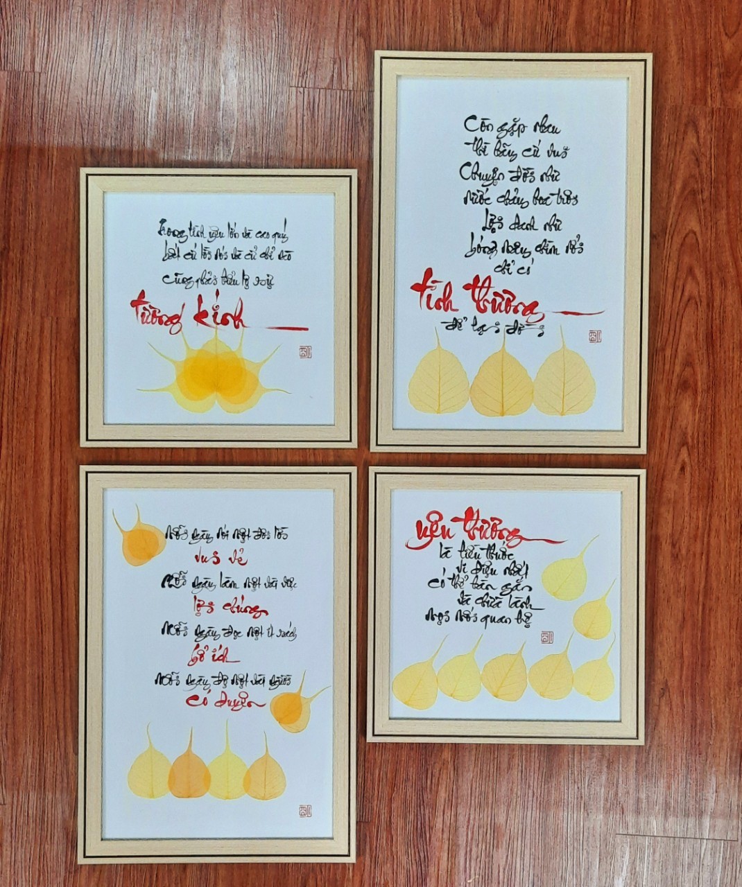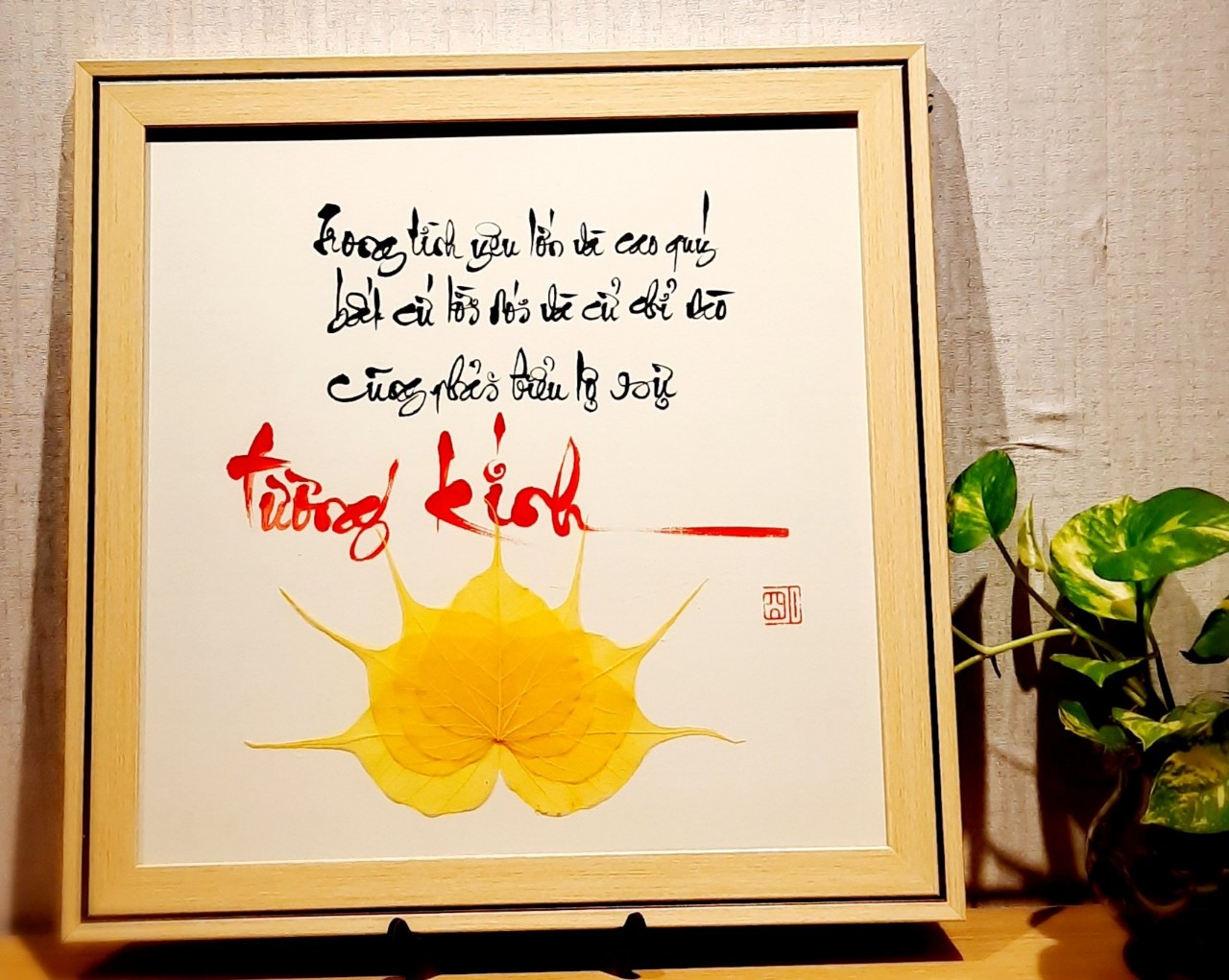 Sự kết hợp giữa thư pháp và lá bồ đề là một món quà ý nghĩa để dành tặng người thân, bạn bè, đối tác, và để trưng bày nơi phòng làm việc, phòng khách, chỗ thờ tự rất đẹp, ý nghĩa
