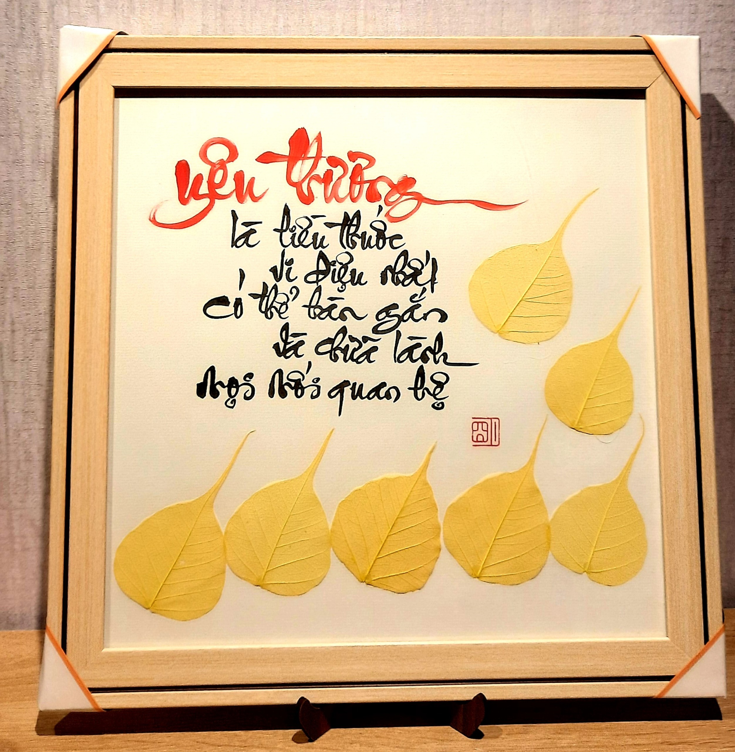 Sự kết hợp giữa thư pháp và lá bồ đề là một món quà ý nghĩa để dành tặng người thân, bạn bè, đối tác, và để trưng bày nơi phòng làm việc, phòng khách, chỗ thờ tự rất đẹp, ý nghĩa