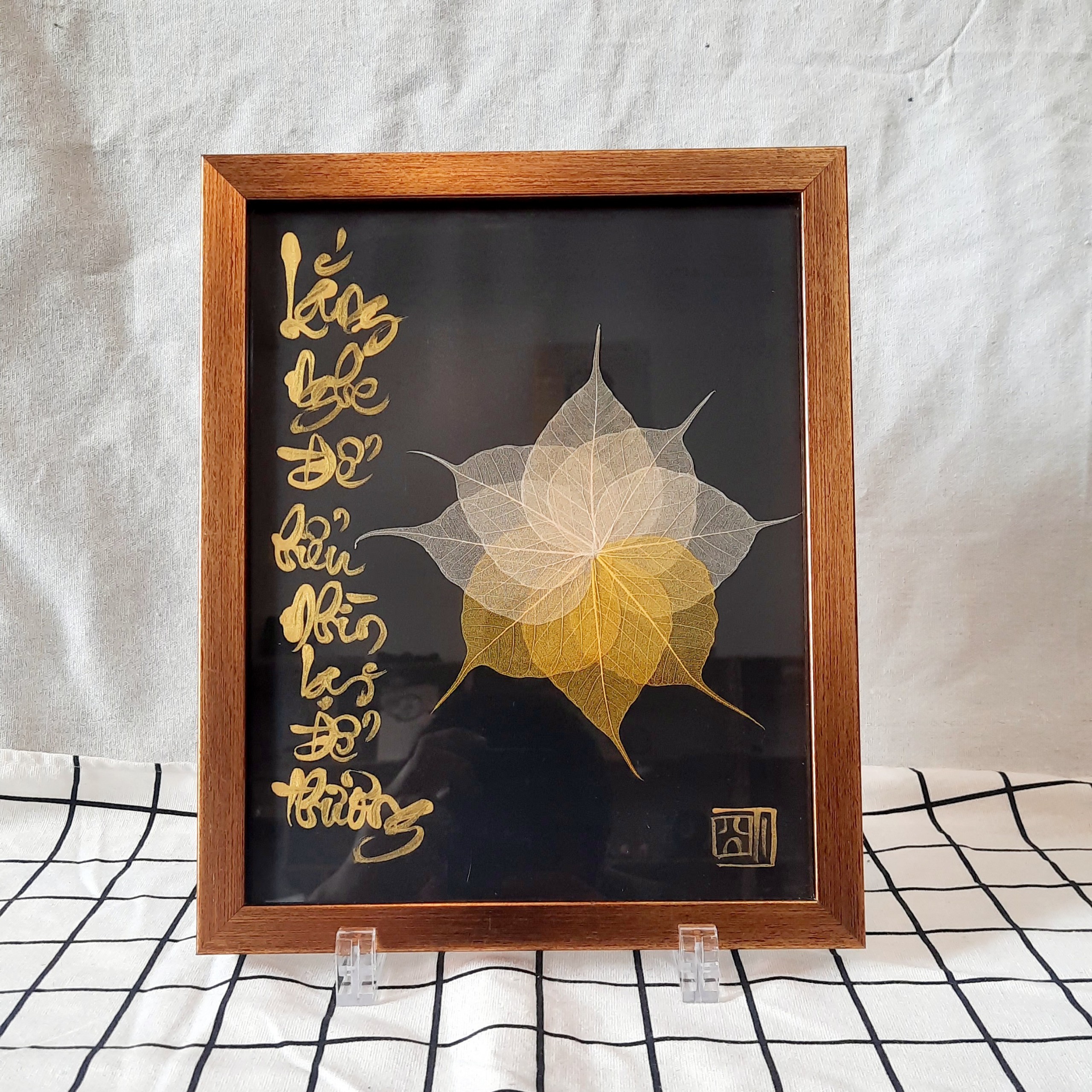 Sự kết hợp giữa thư pháp và lá bồ đề là một món quà ý nghĩa để dành tặng người thân, bạn bè, đối tác, và để trưng bày nơi phòng làm việc, phòng khách, chỗ thờ tự rất đẹp, ý nghĩa