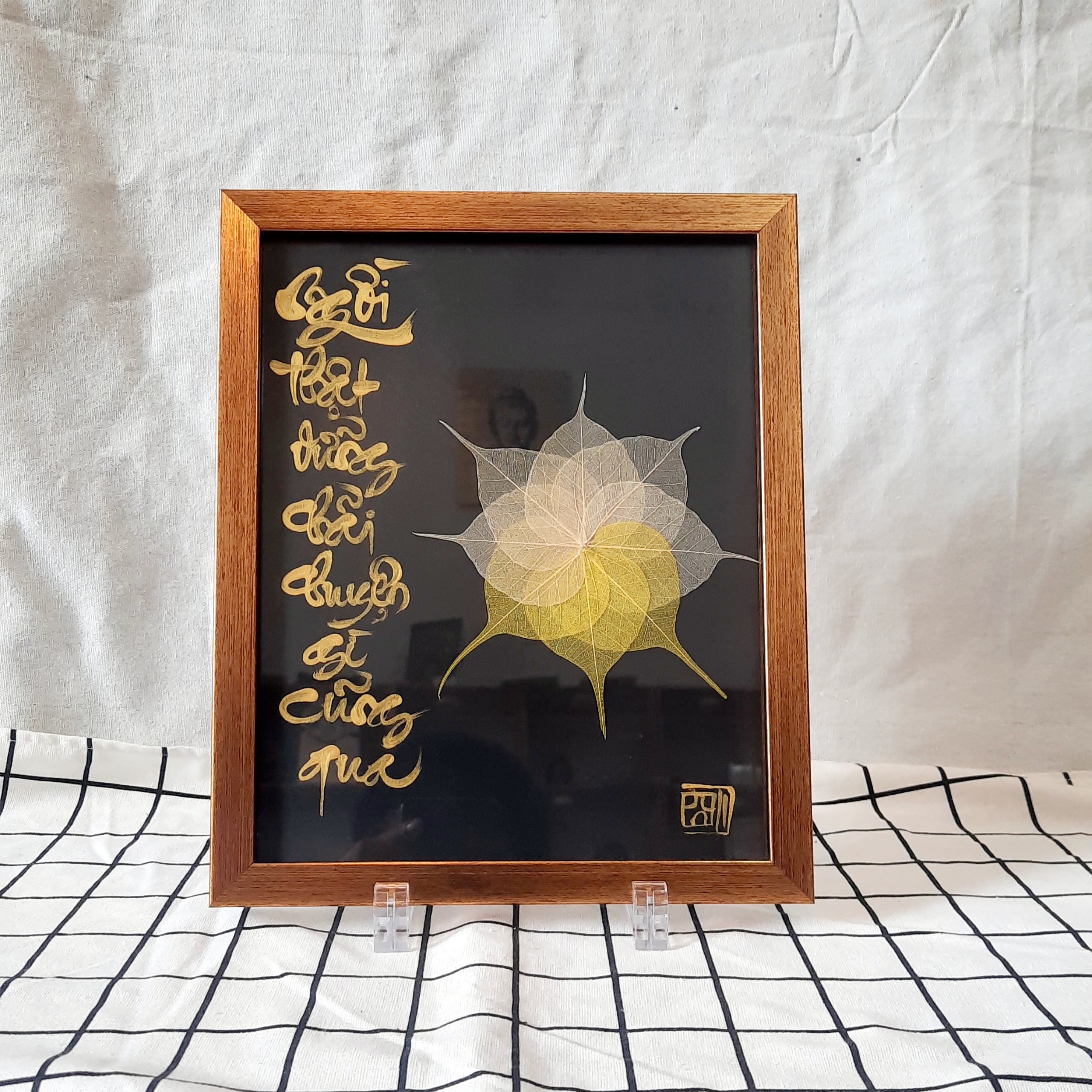 Sự kết hợp giữa thư pháp và lá bồ đề là một món quà ý nghĩa để dành tặng người thân, bạn bè, đối tác, và để trưng bày nơi phòng làm việc, phòng khách, chỗ thờ tự rất đẹp, ý nghĩa