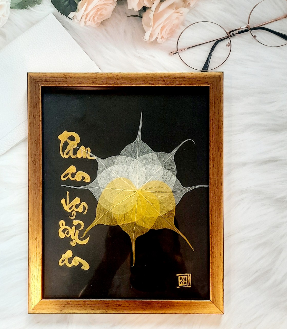 Sự kết hợp giữa thư pháp và lá bồ đề là một món quà ý nghĩa để dành tặng người thân, bạn bè, đối tác, và để trưng bày nơi phòng làm việc, phòng khách, chỗ thờ tự rất đẹp, ý nghĩa