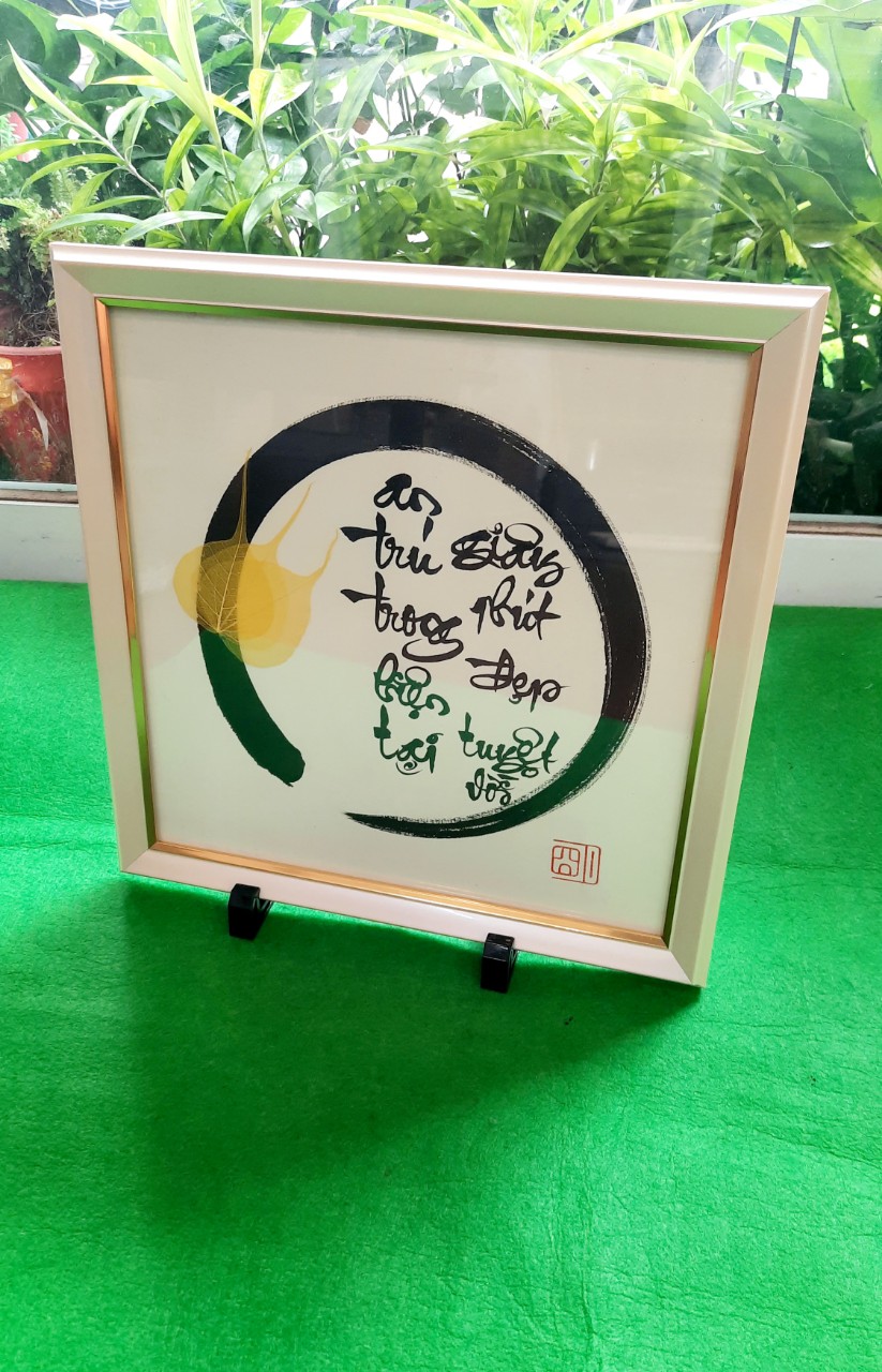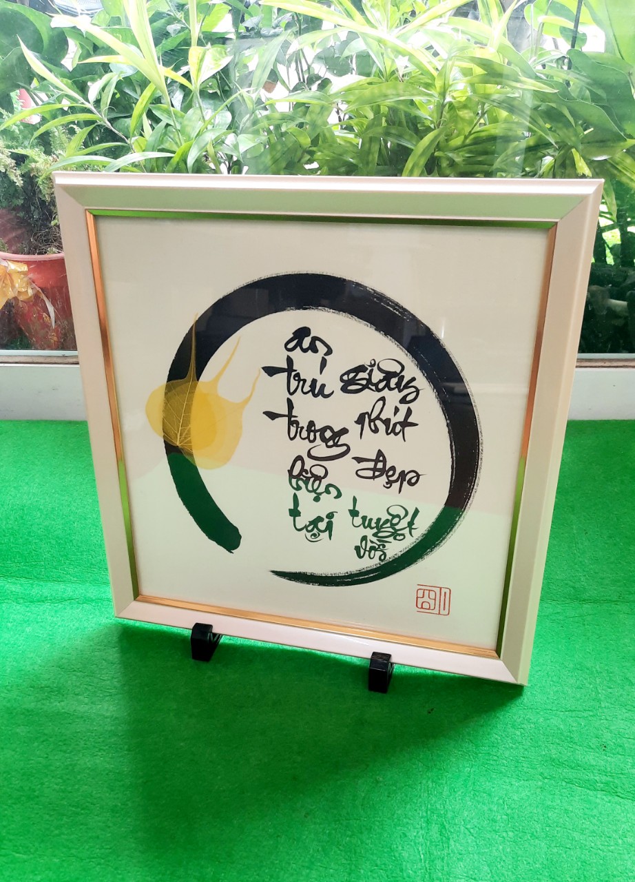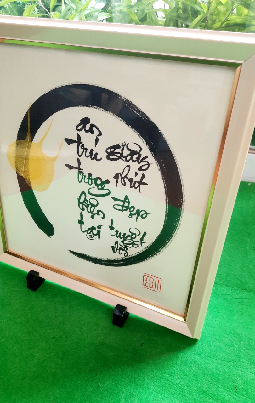 Sự kết hợp giữa thư pháp và lá bồ đề là một món quà ý nghĩa để dành tặng người thân, bạn bè, đối tác, và để trưng bày nơi phòng làm việc, phòng khách, chỗ thờ tự rất đẹp, ý nghĩa
