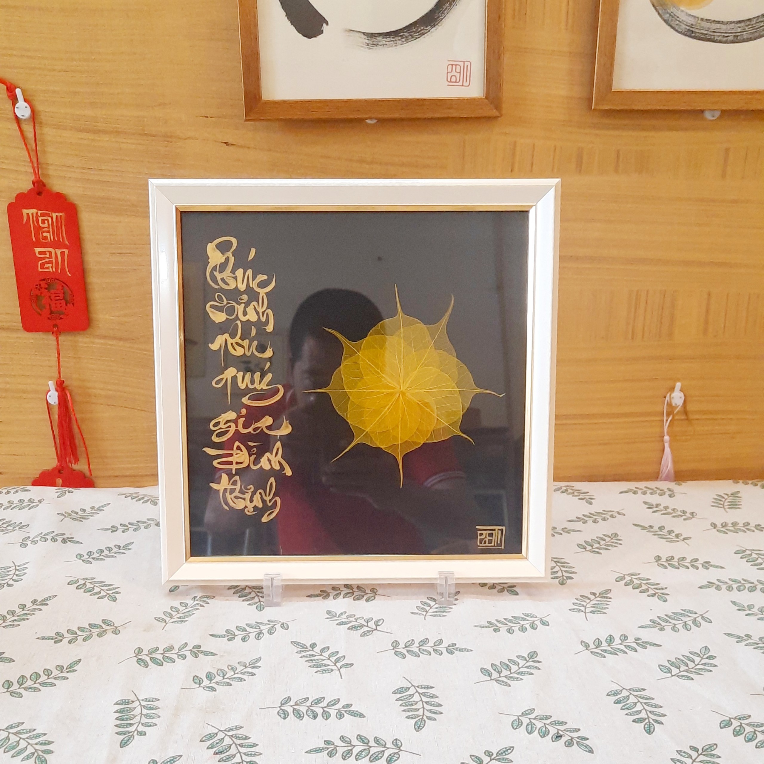 Sự kết hợp giữa thư pháp và lá bồ đề là một món quà ý nghĩa để dành tặng người thân, bạn bè, đối tác, và để trưng bày nơi phòng làm việc, phòng khách, chỗ thờ tự rất đẹp, ý nghĩa