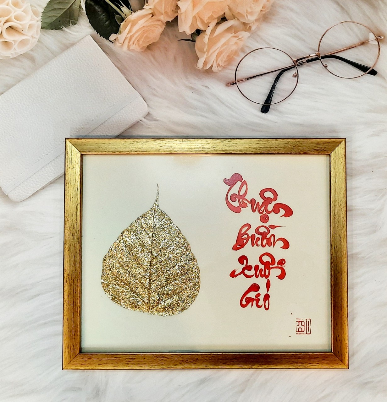 Sự kết hợp giữa thư pháp và lá bồ đề là một món quà ý nghĩa để dành tặng người thân, bạn bè, đối tác, và để trưng bày nơi phòng làm việc, phòng khách, chỗ thờ tự rất đẹp, ý nghĩa