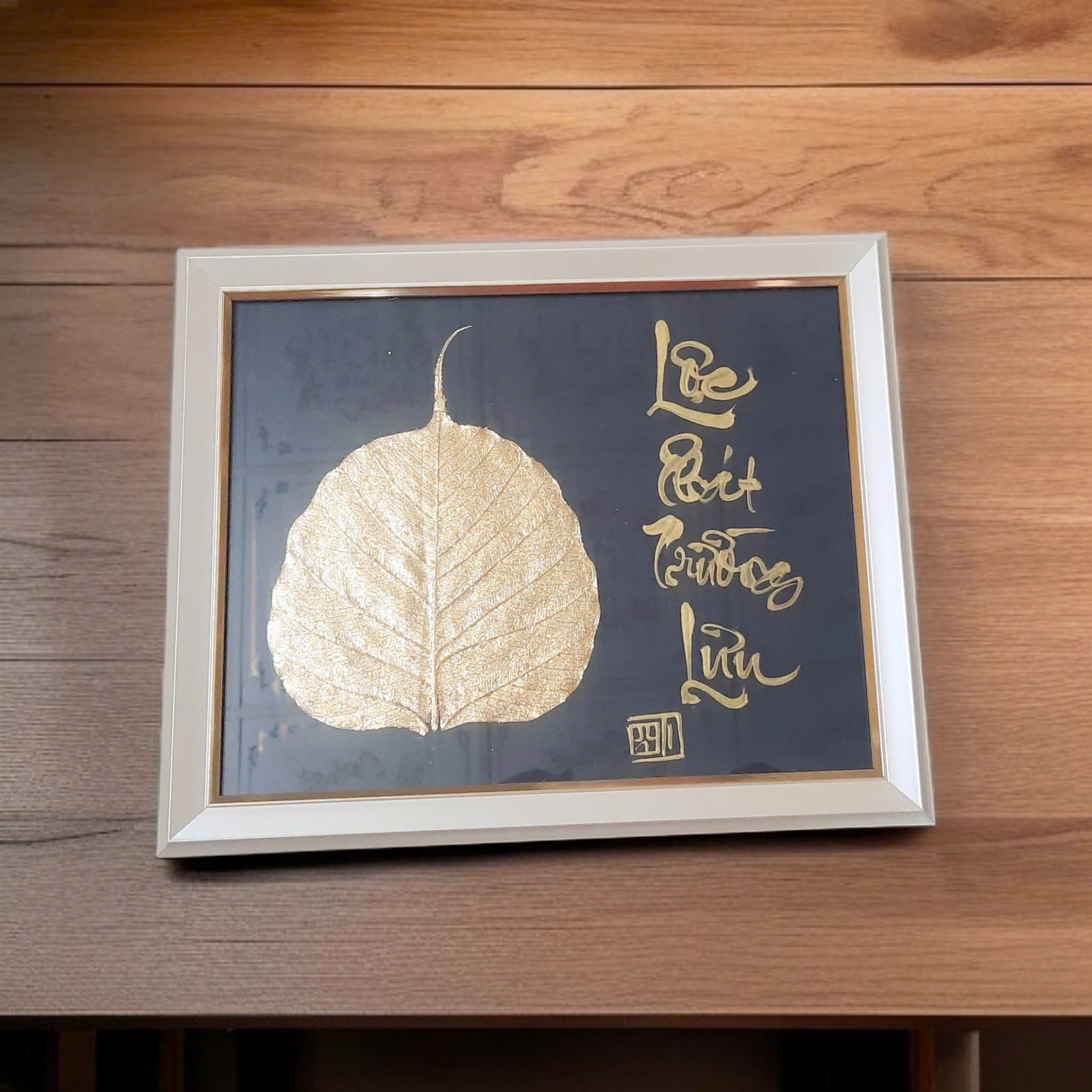 Sự kết hợp giữa thư pháp và lá bồ đề là một món quà ý nghĩa để dành tặng người thân, bạn bè, đối tác, và để trưng bày nơi phòng làm việc, phòng khách, chỗ thờ tự rất đẹp, ý nghĩa