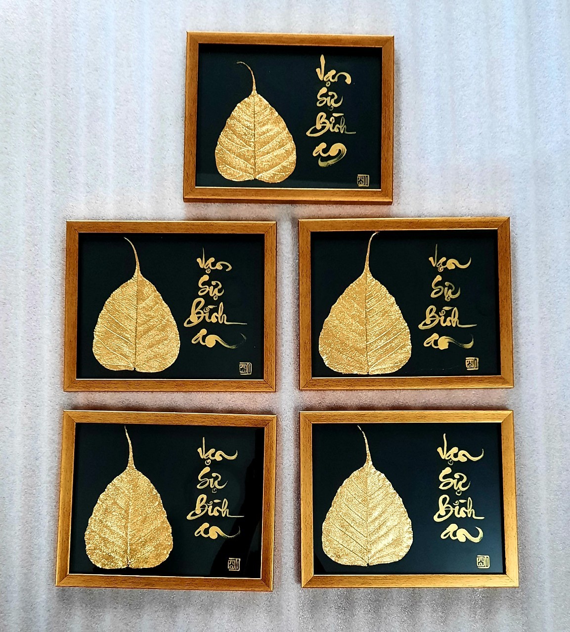lá dát vàng, chữ nhũ vàng, khung đồng