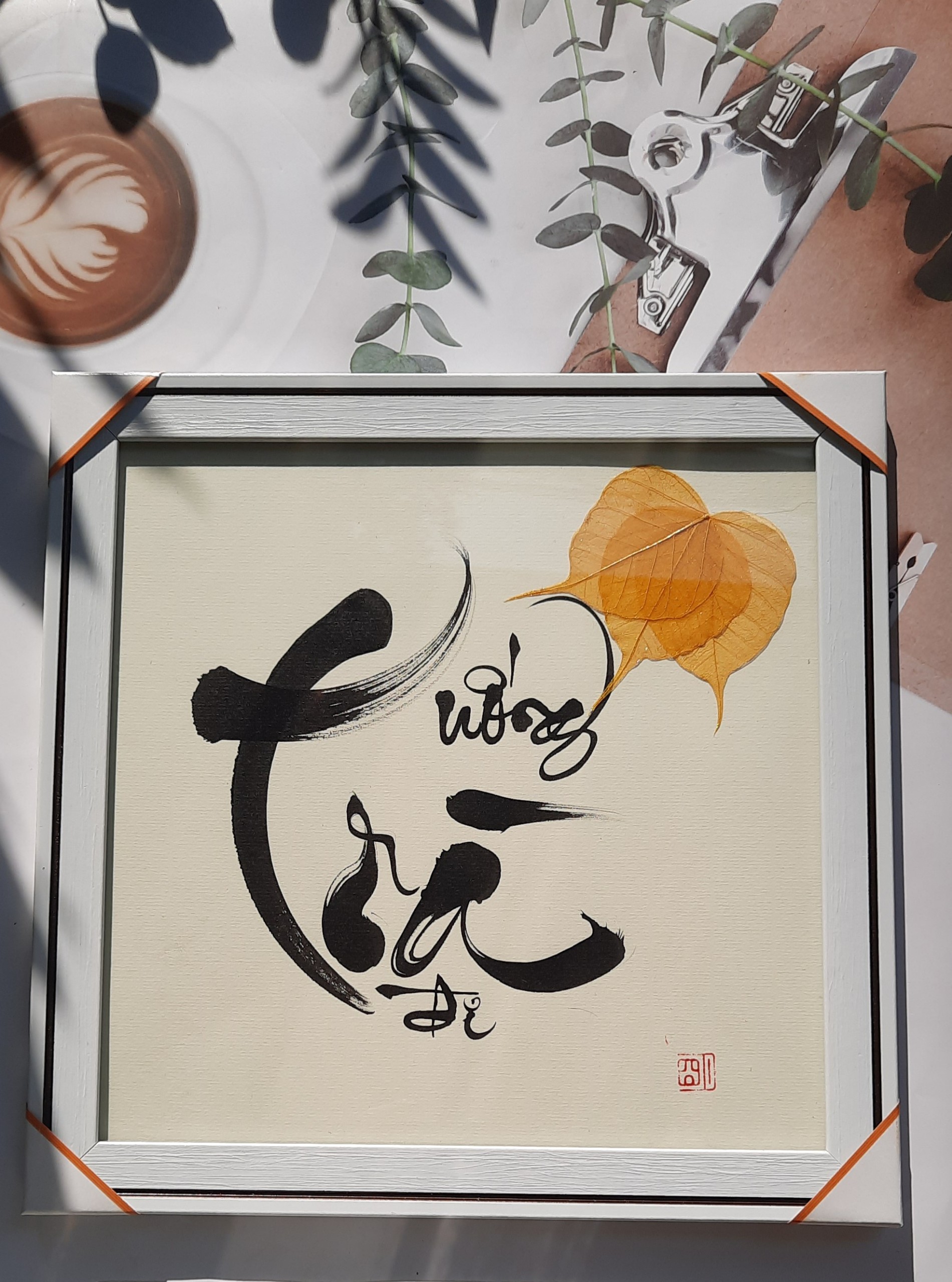 Sự kết hợp giữa thư pháp và lá bồ đề là một món quà ý nghĩa để dành tặng người thân, bạn bè, đối tác, và để trưng bày nơi phòng làm việc, phòng khách, chỗ thờ tự rất đẹp, ý nghĩa